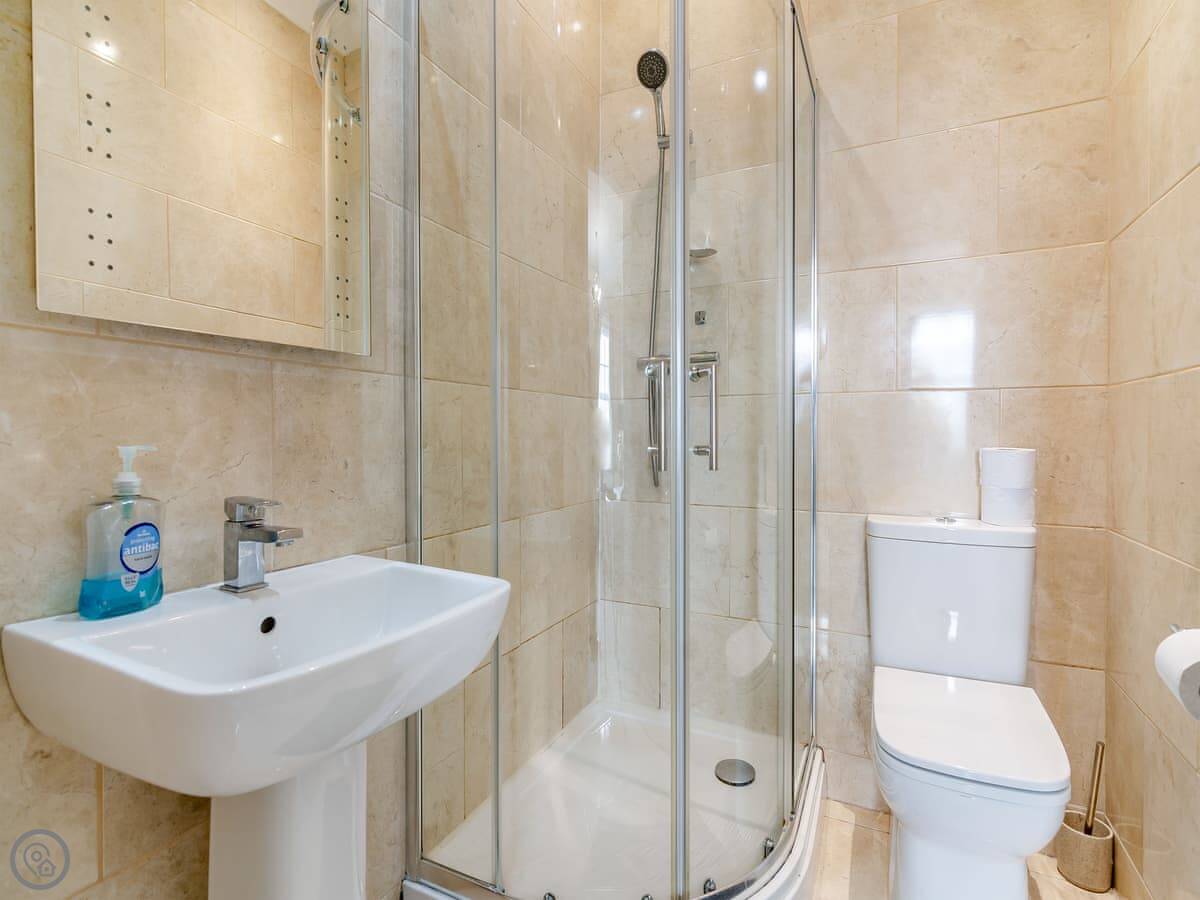 Facilities: Everything listed is there. Washing machine, dishwasher, cot, highchair, stairgate. There’s also an indoor swimming pool on the shared estate you can use. No pets allowed.