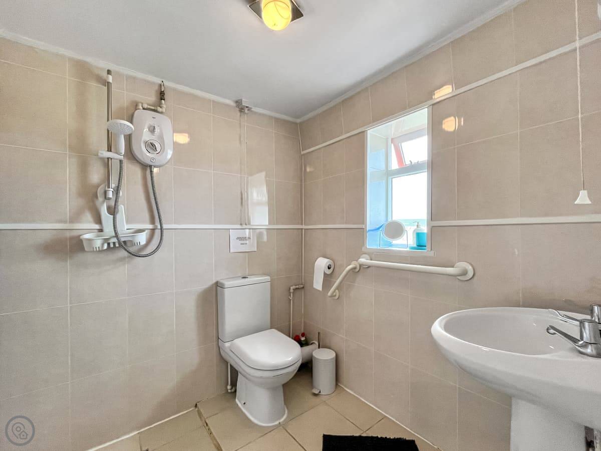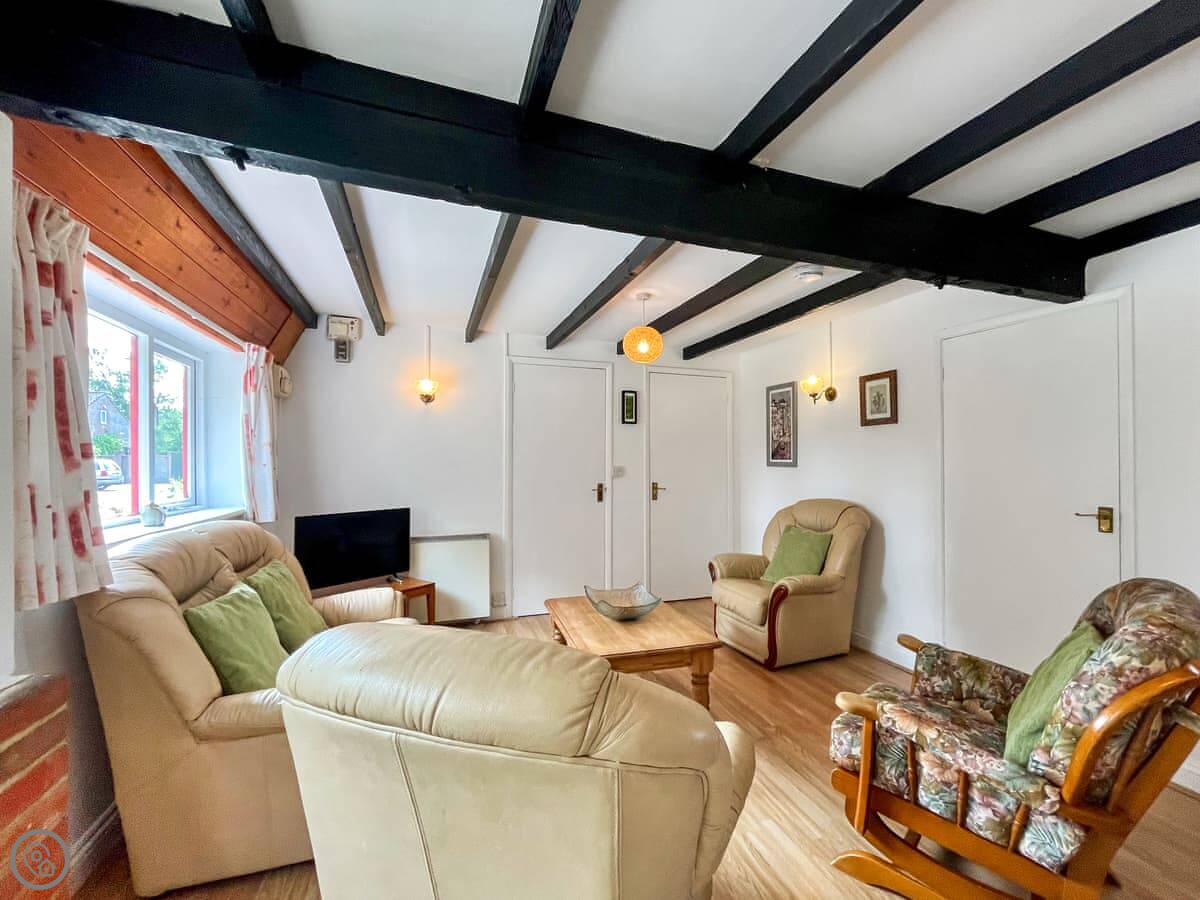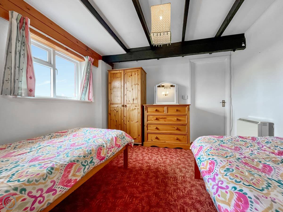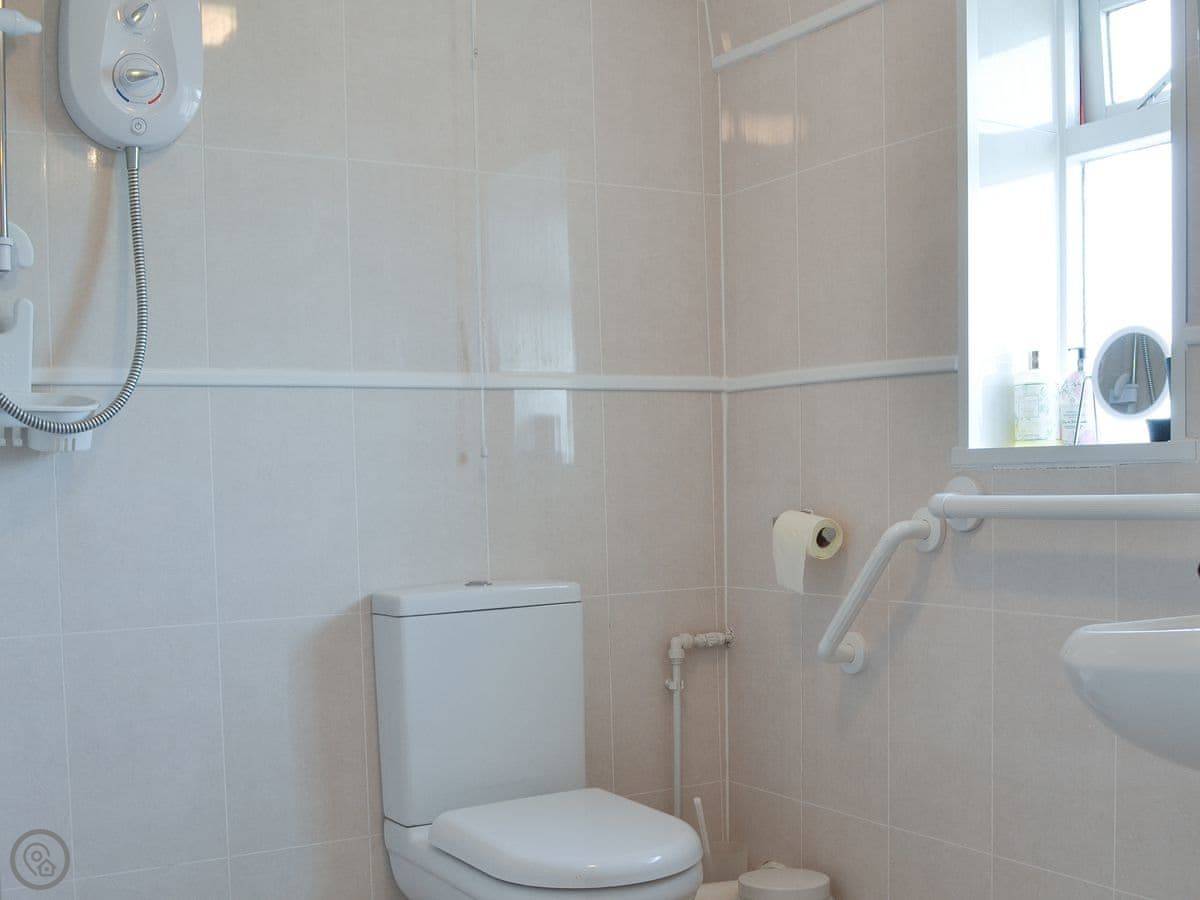 It sleeps four. Two bedrooms, one wet room bathroom. It's 3 Star rated. That means it's comfortable and clean, but not luxurious. It's good for less mobile guests or if you just don't fancy stairs. There are grab rails in the wet room.