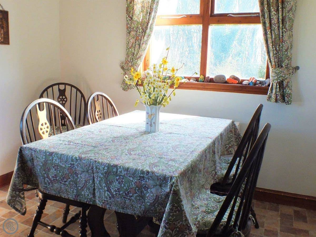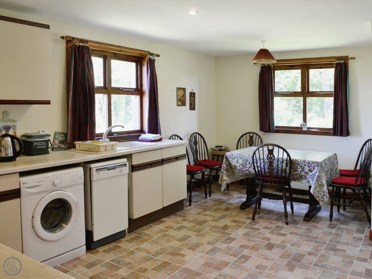 Inside, there's a woodburning stove, a dishwasher, and a washing machine. Bedding and towels are included. There's parking for you. You can bring up to two dogs. We provide a cot and a highchair if you need them.