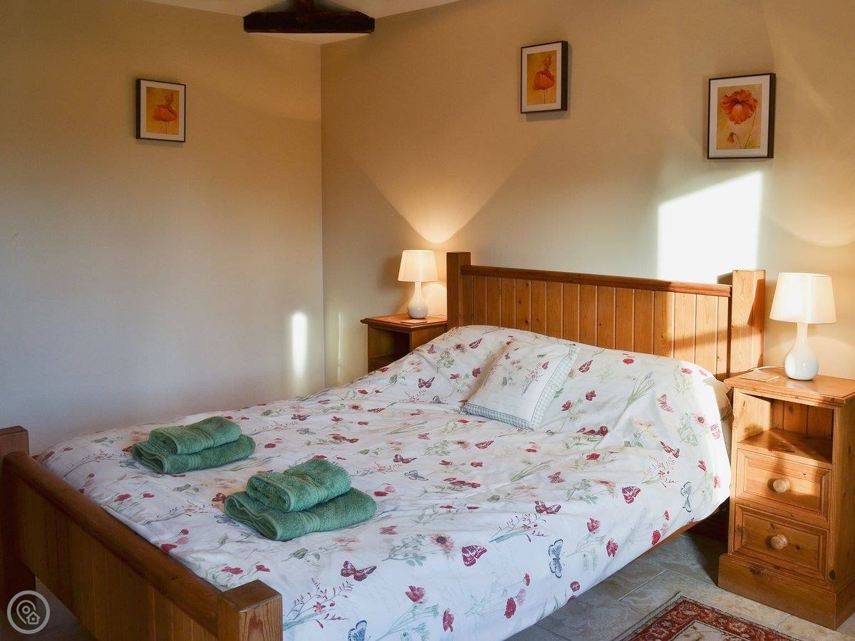 It sleeps four in two bedrooms. There's one bathroom with a walk-in shower. It's got a 5 Star rating, which means it's been done to a high standard. It's all on one level and the doors are wide, so it works if you have mobility issues. There's underfloor heating and a wood burner.