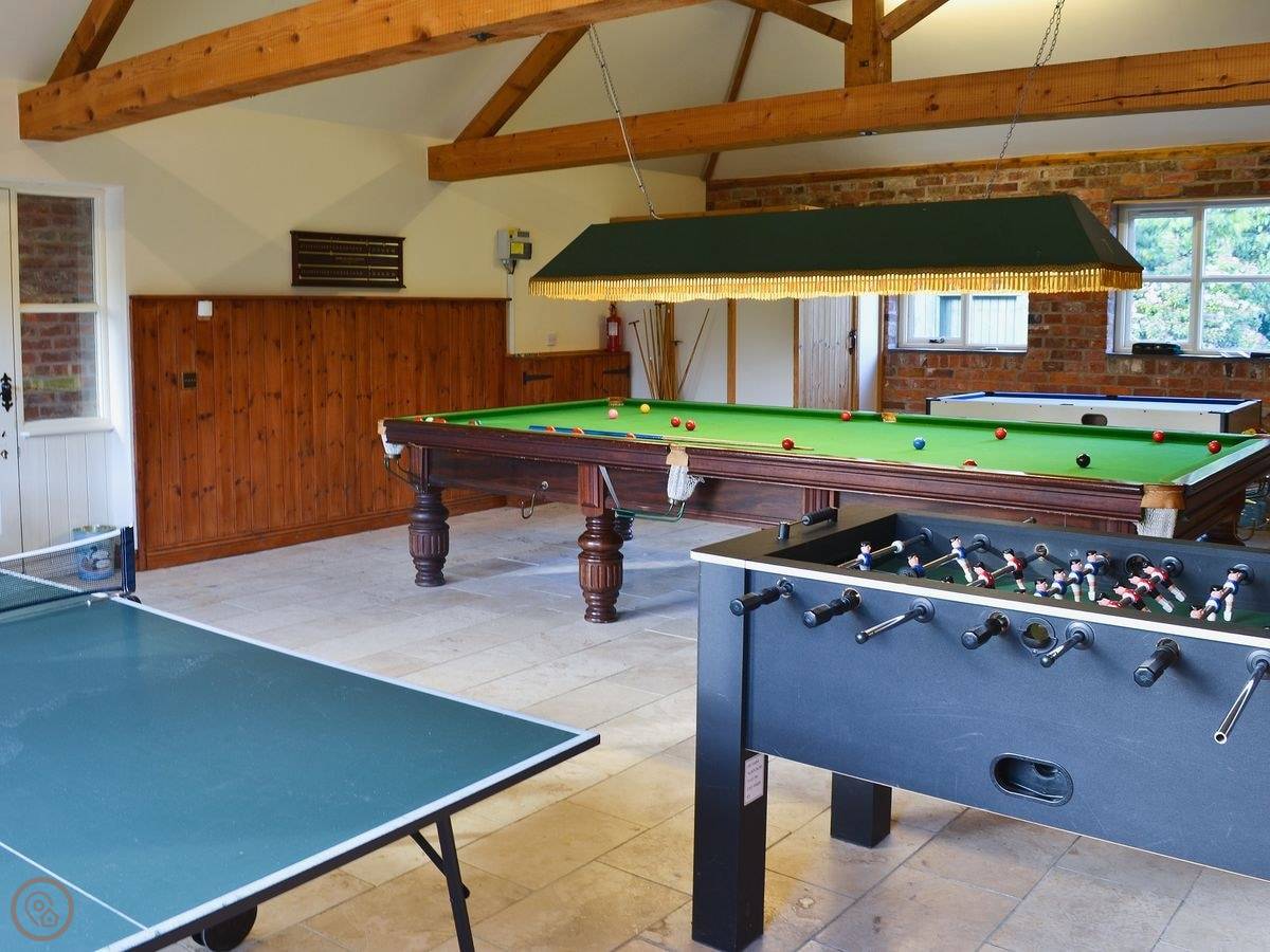 The cottage is part of a small site. There's a shared acre of grounds. The kids' farm is here, with sheep, goats, a horse and guinea pigs. Children can help feed them and collect eggs. There's a games room with a snooker table and table tennis, and an outdoor play area with a sand pit.