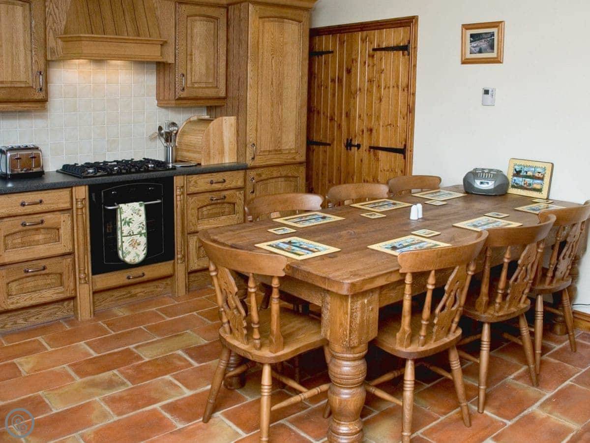 It sleeps six people in three bedrooms. There are two bathrooms. It has a 5 Star rating, which means it's well-equipped. It's got underfloor heating and a wood burner for the colder months.