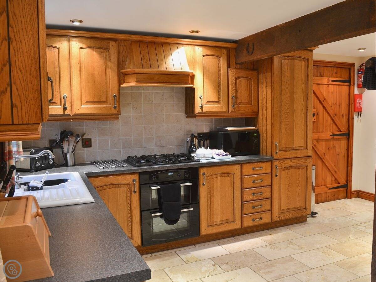 It sleeps eight. Four bedrooms, three bathrooms. It's got a 5 Star rating, which basically means it's well-equipped and comfortable. That includes underfloor heating and a wood burner.