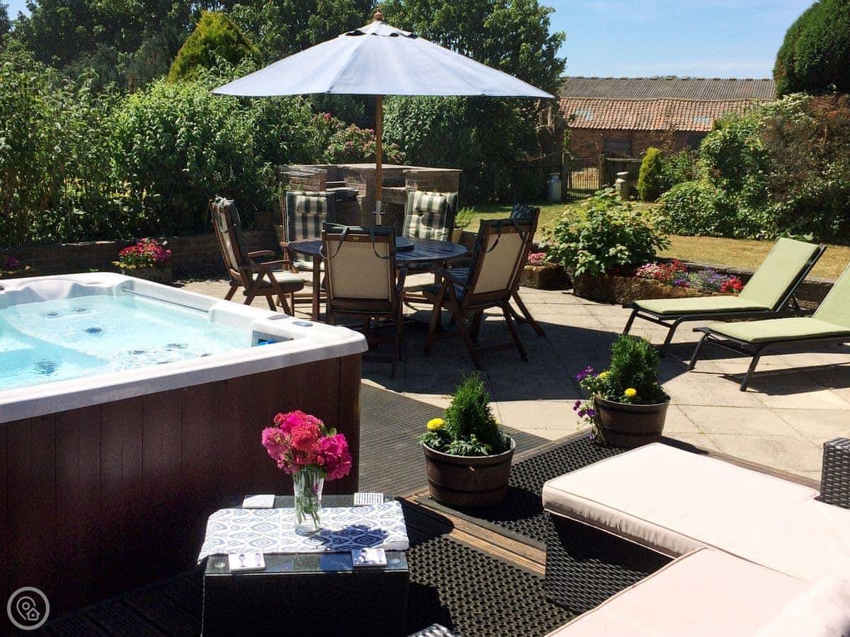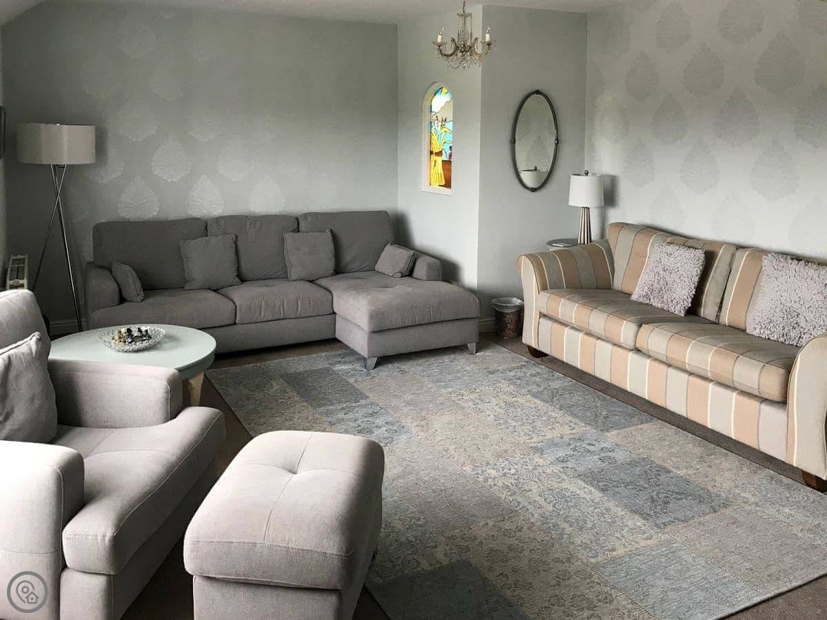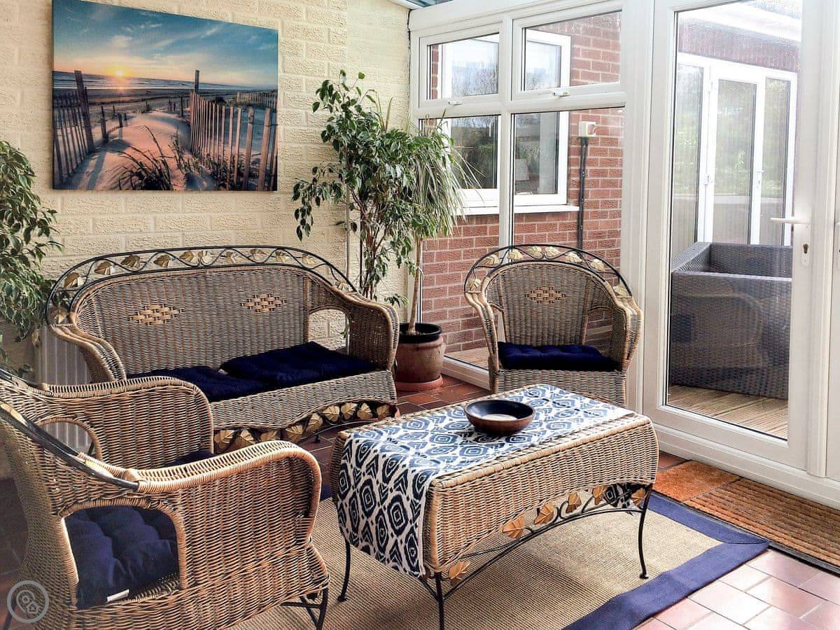 It sleeps eight. Four bedrooms, two bathrooms. It has a 4 Star rating, so it's comfortable and well-equipped. Very family-friendly. The garden is big, enclosed, and has a summerhouse. We've got apple trees. You're welcome to use the barbecue.