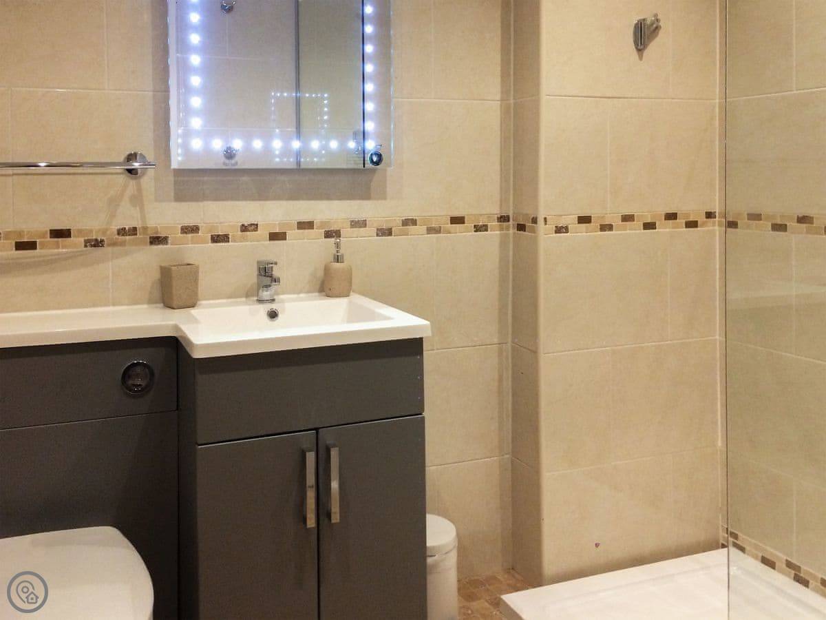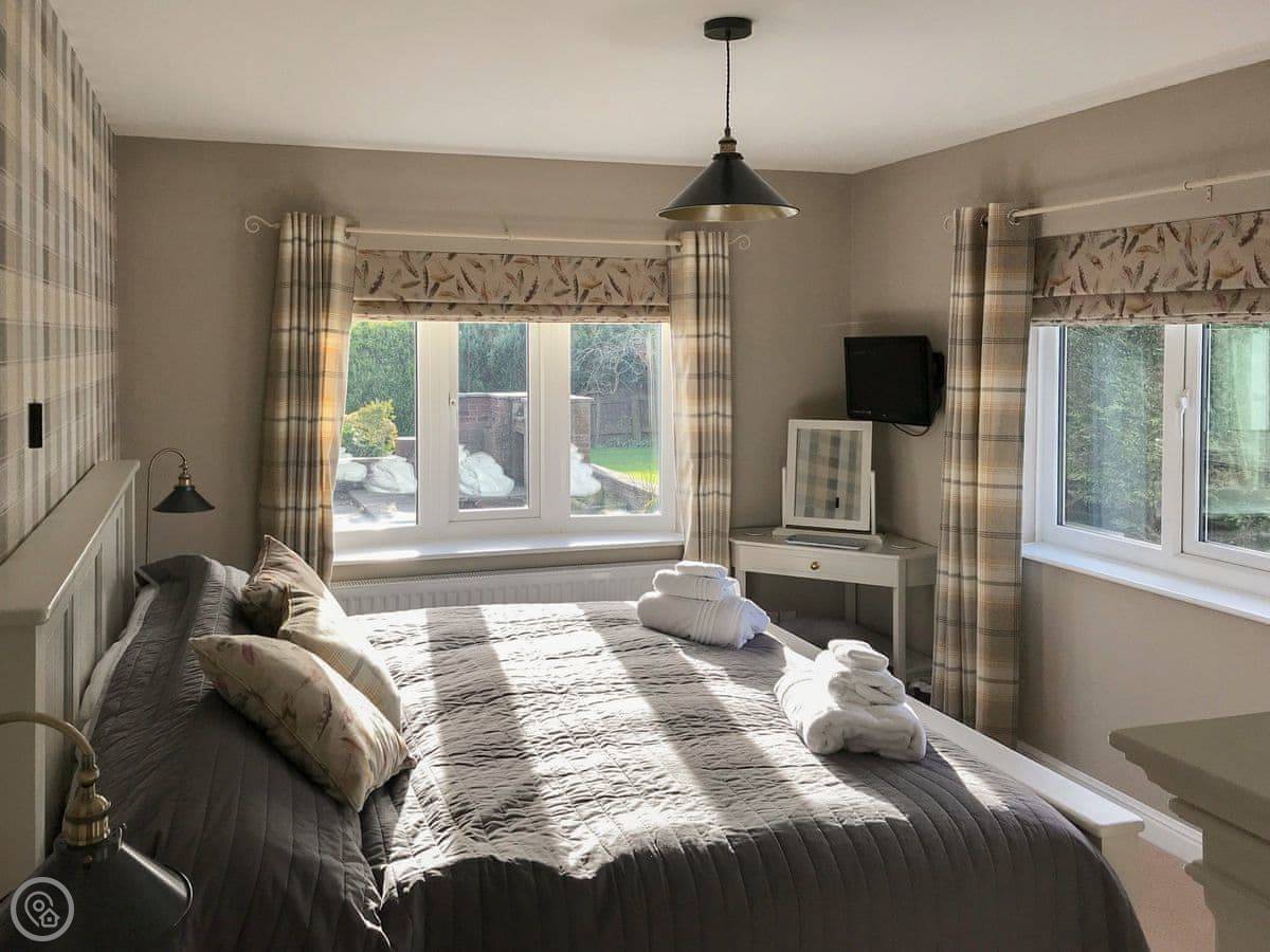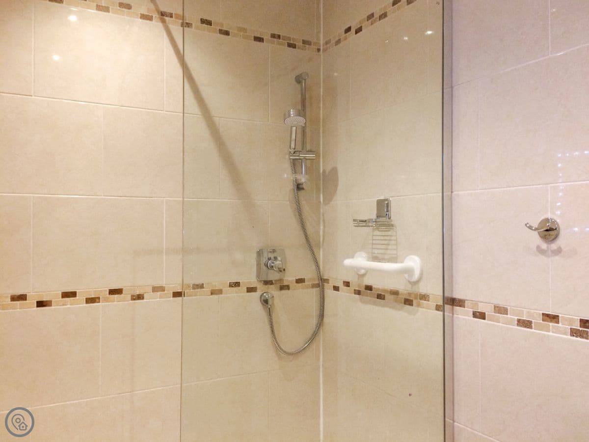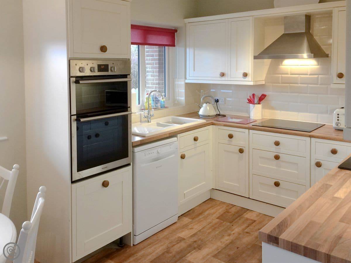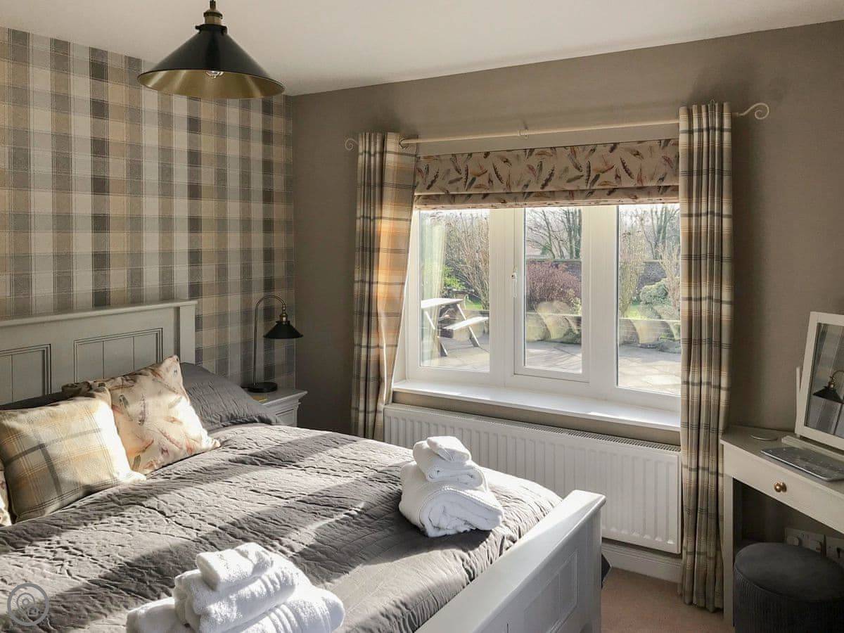 In terms of what's here: parking right outside. Enclosed garden. Washing machine, dishwasher, wood burner. Bedding and towels are included. It's wheelchair accessible, with grab rails and a seat in the shower. We can take up to two dogs.