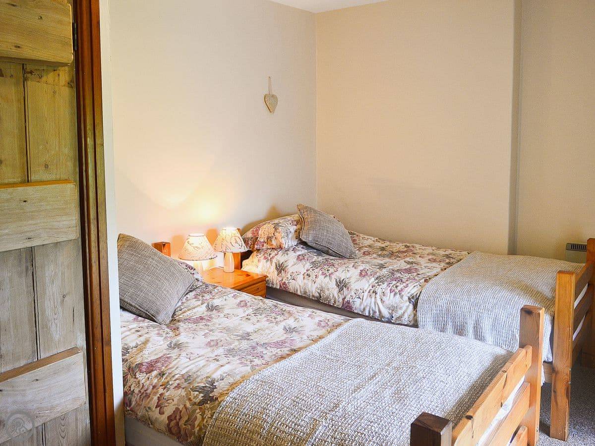 It sleeps four. Two bedrooms, one bathroom. It's a 4 Star place, which means it's comfortable and all done up inside. The garden is completely enclosed so it's safe for a dog. It's quite quiet here, apart from the usual farm sounds. It is a working farm, so you'll hear tractors sometimes and see livestock.