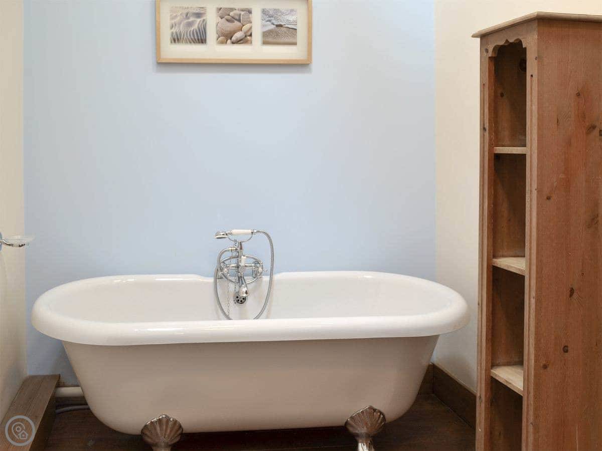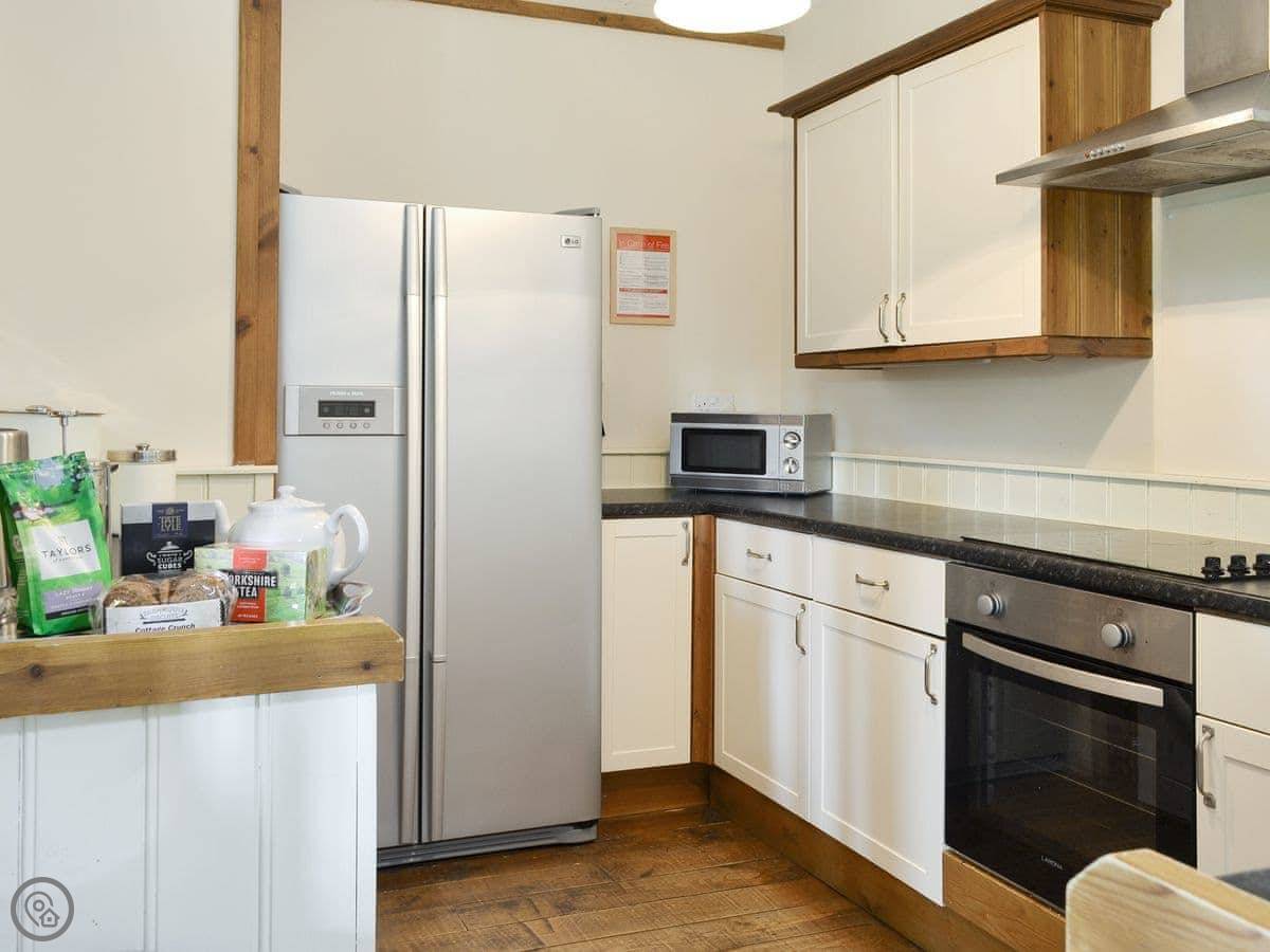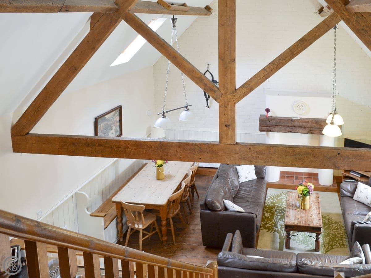 It sleeps eight in four bedrooms, with two bathrooms. It's got a 4 Star rating. It's been done up well, quite spacious. You have to go outside to get to the downstairs loo and shower room. That's because of how they converted the old barns.