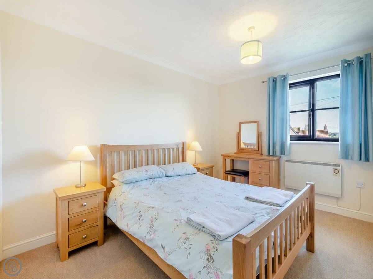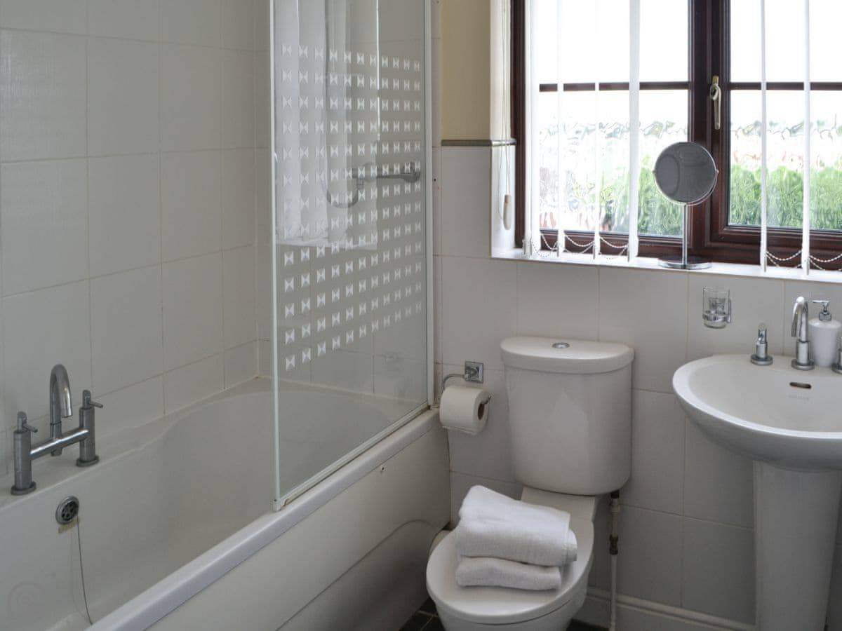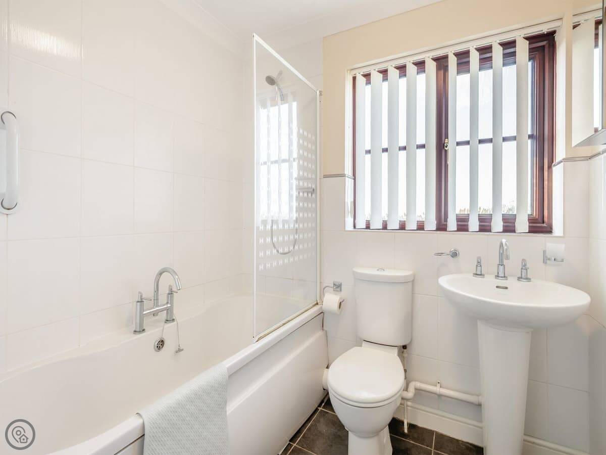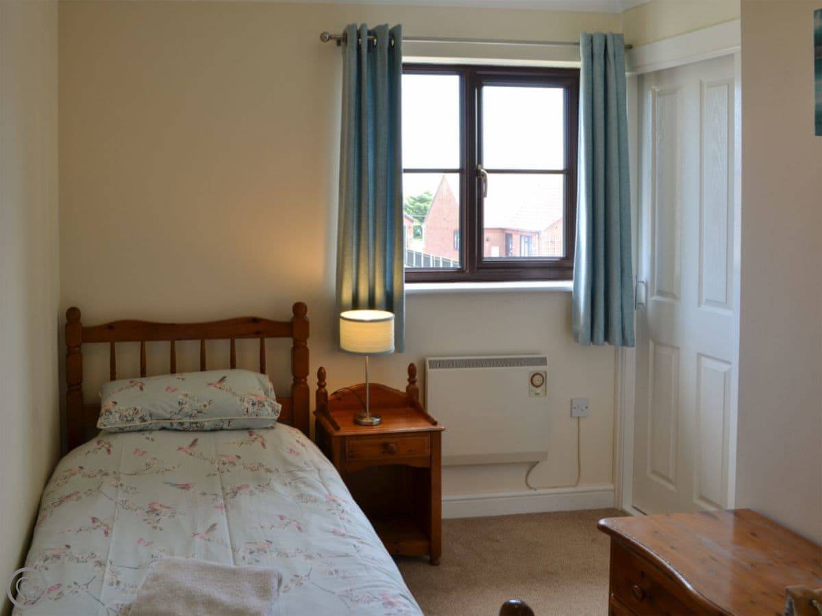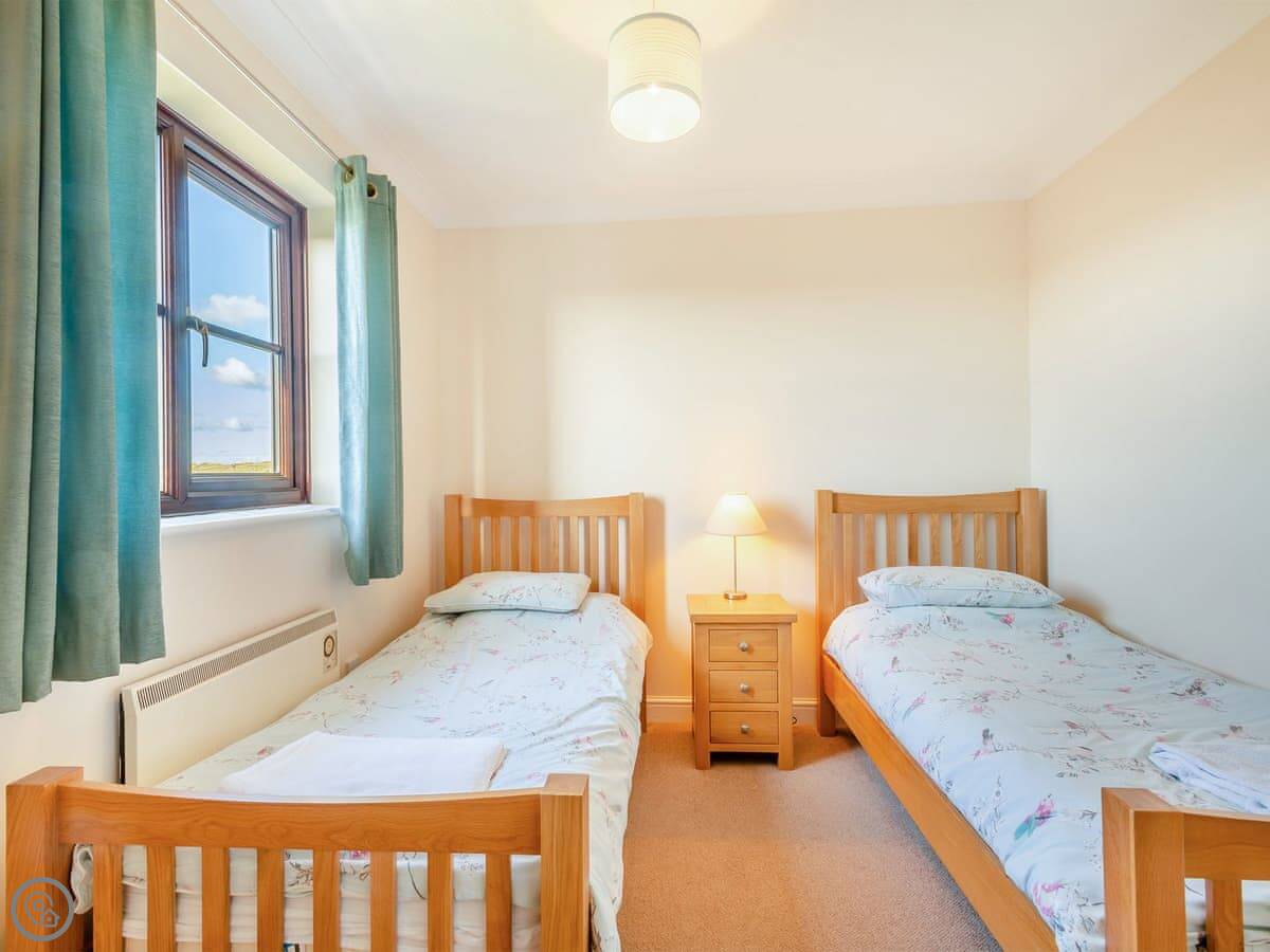 It sleeps five. Three bedrooms and one bathroom. It's got a 4 Star rating, which means it's in good order. We allow up to three dogs. The beach is about a three minute walk, 200 yards or so. You can see the sea from the end of the road.