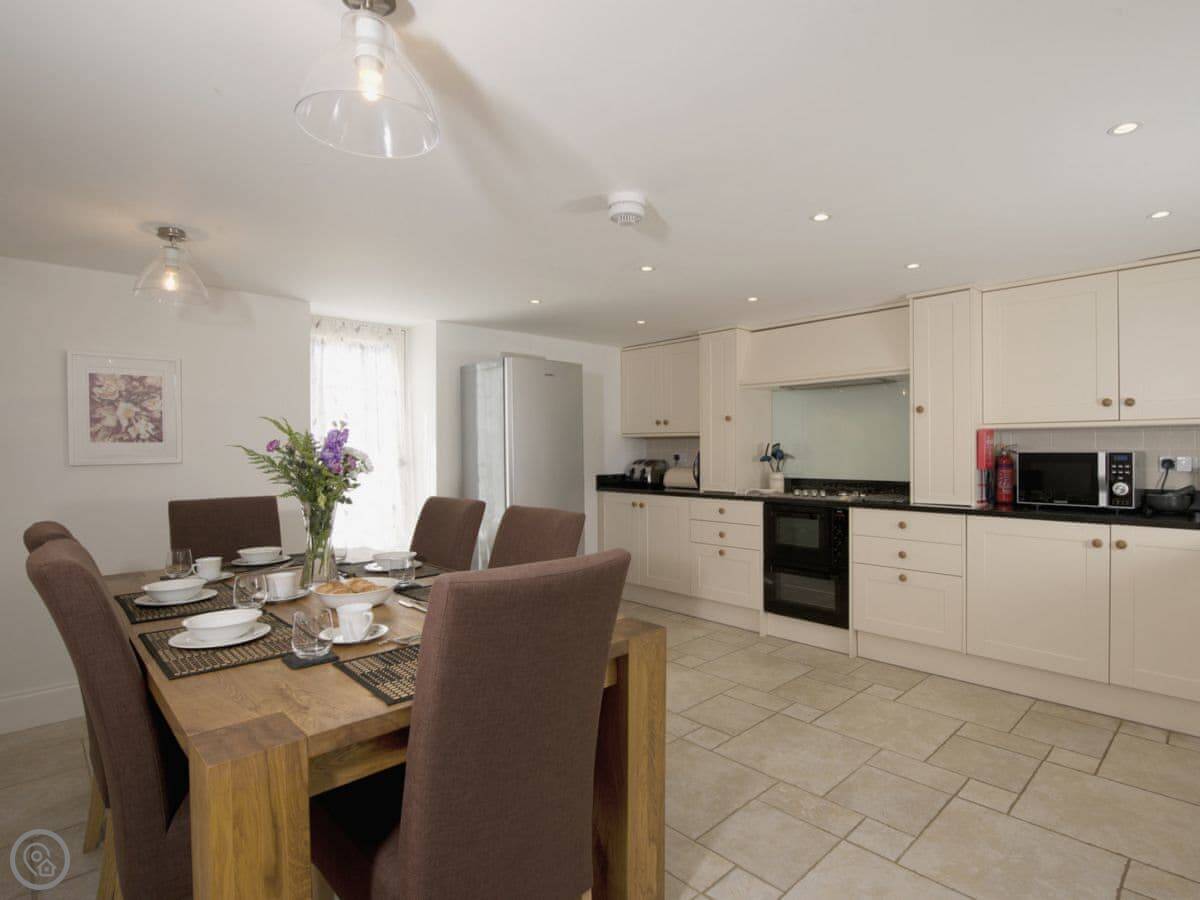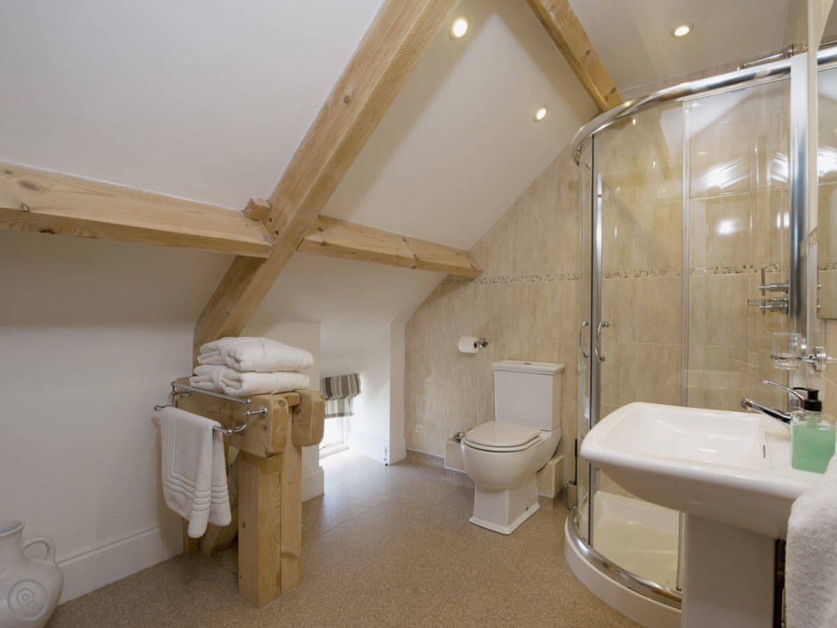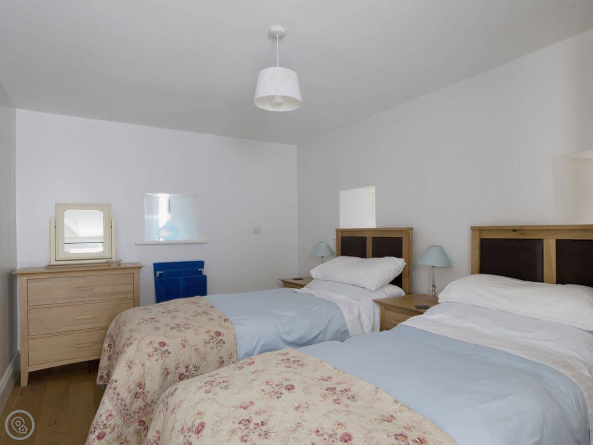 It sleeps six. Three bedrooms, two bathrooms. It's got a 5 Star rating, which means it's well finished and comfortable. Everything works properly. Underfloor heating downstairs, wood burner if you want it.