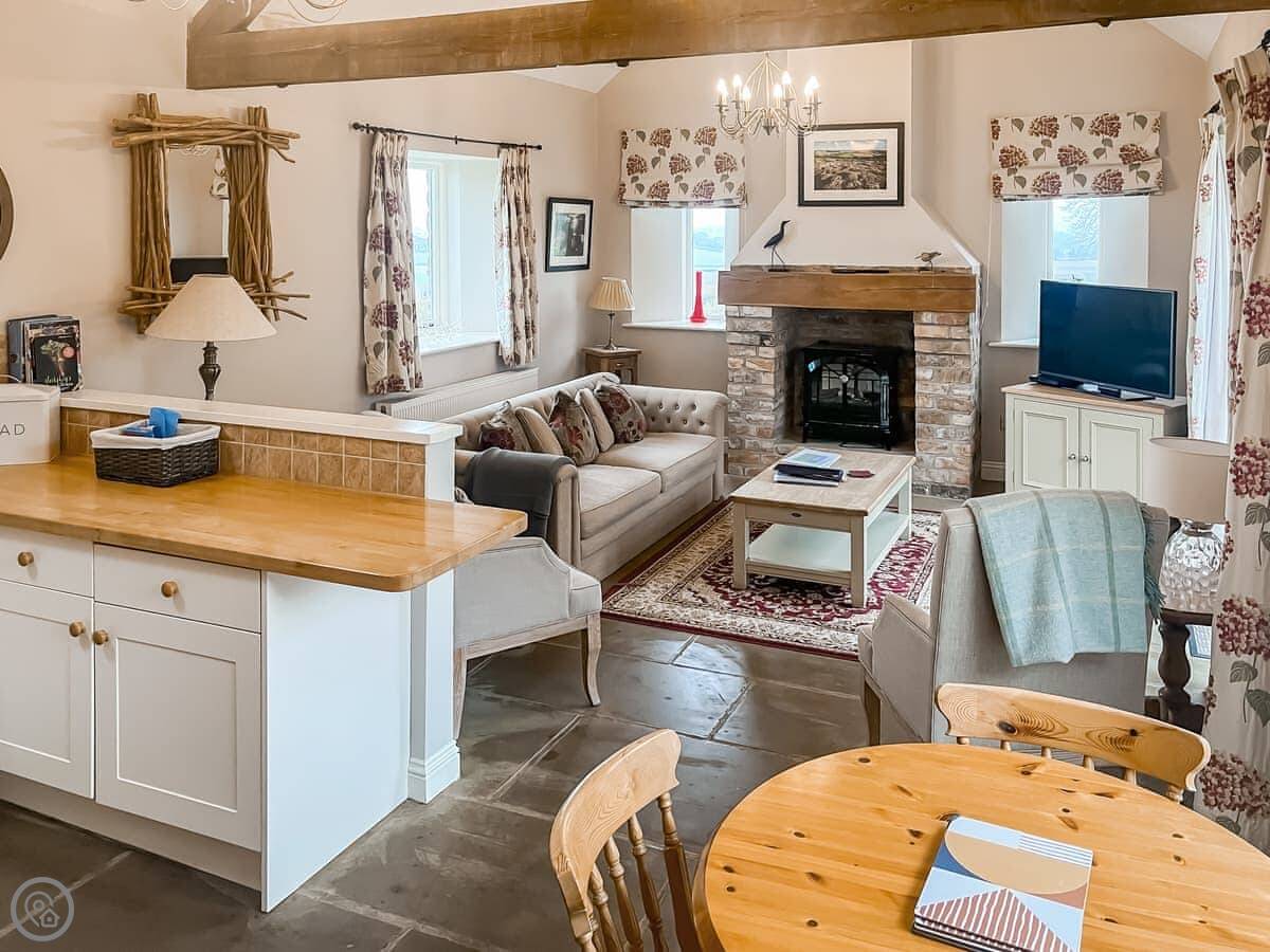 This is Blue Mountain Barn. It's a single-storey place near Scalby, just outside Scarborough. It's a converted field barn, so it's detached and feels very private. The main thing is the view. You look out over fields and you can see the sea and Scarborough Castle in the distance.