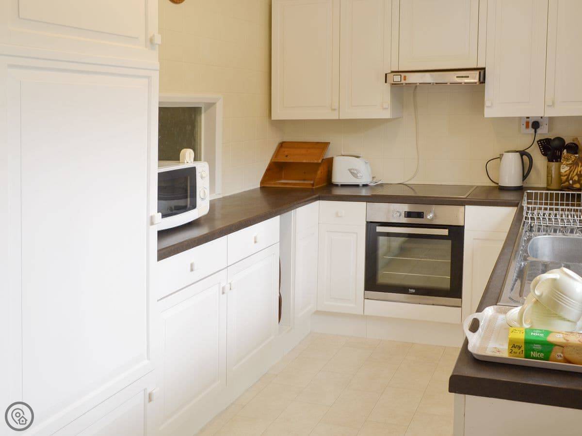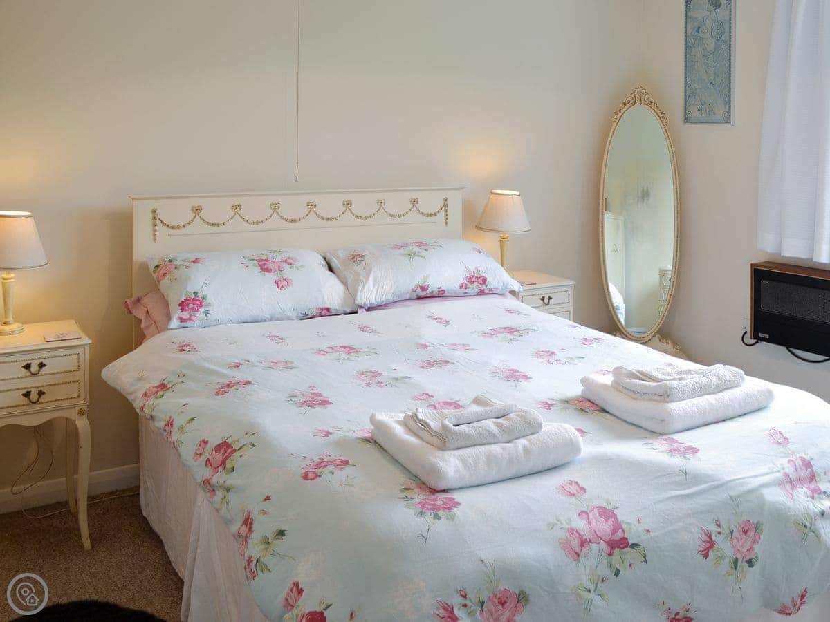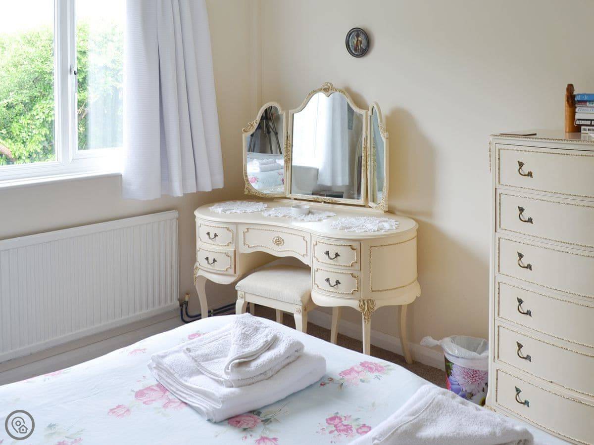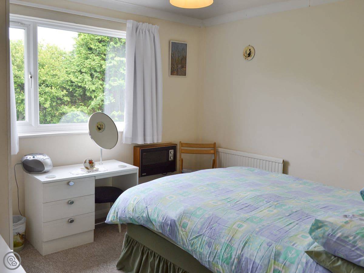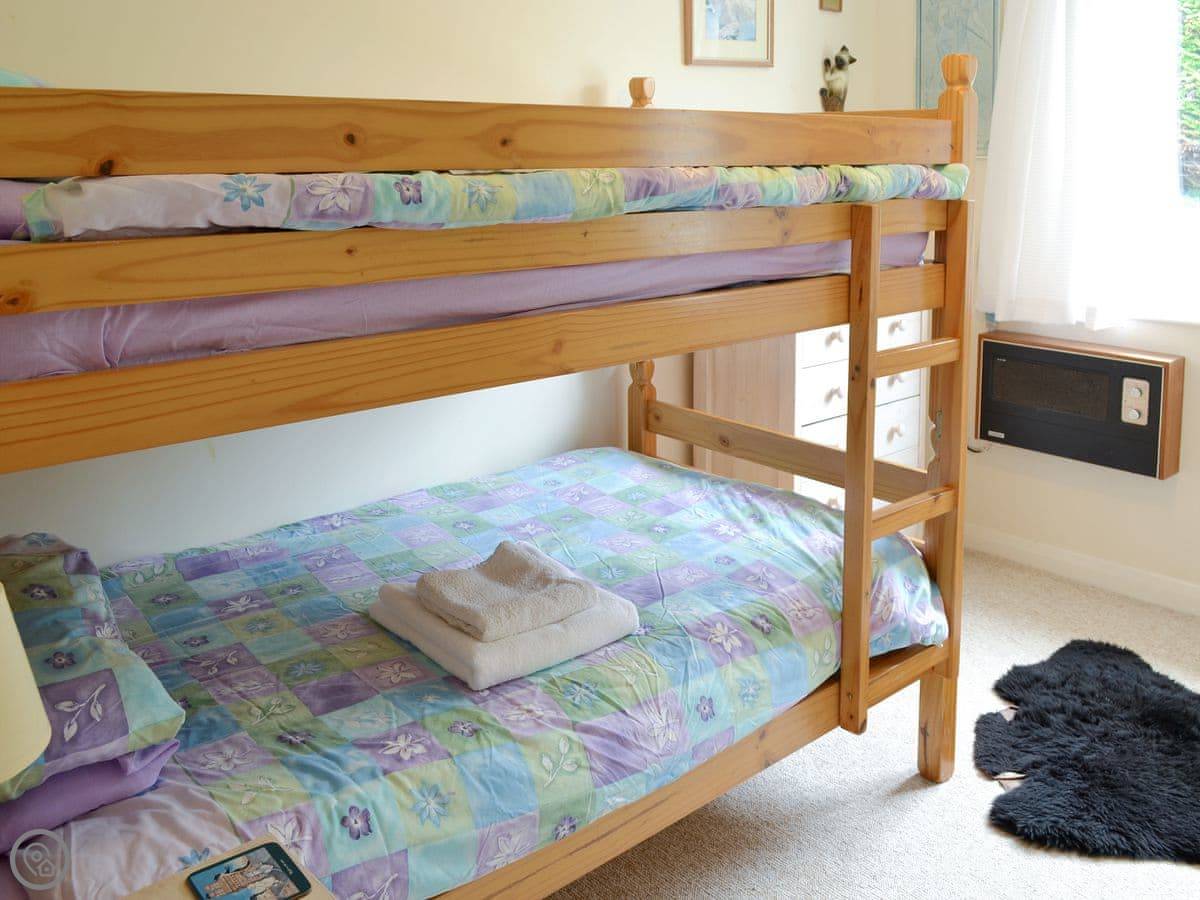 It sleeps four. There are three bedrooms upstairs and one bathroom down. It's got a 4 Star rating, which means it's well-kept and comfortable. There's a woodburning stove for cooler evenings.
