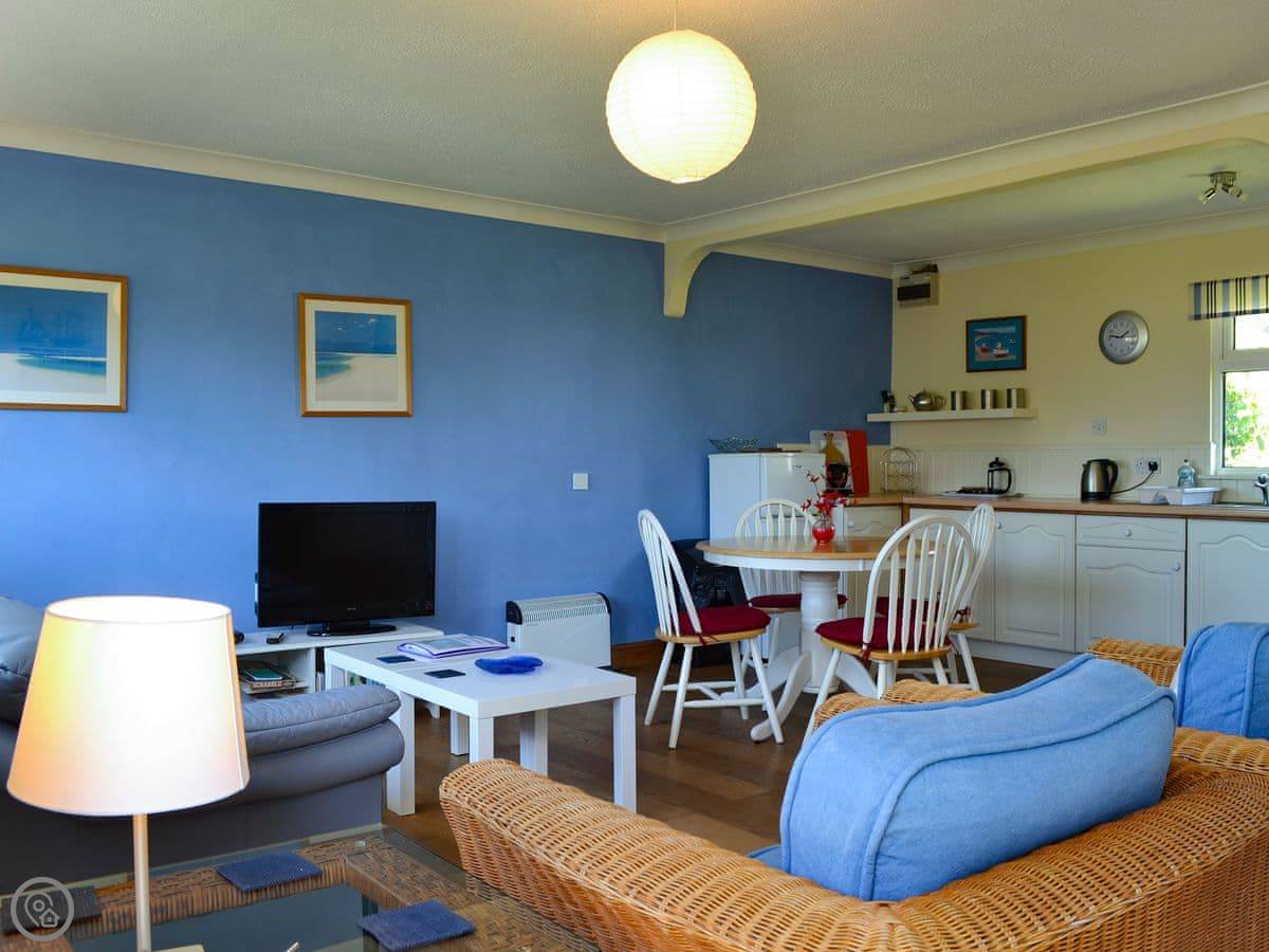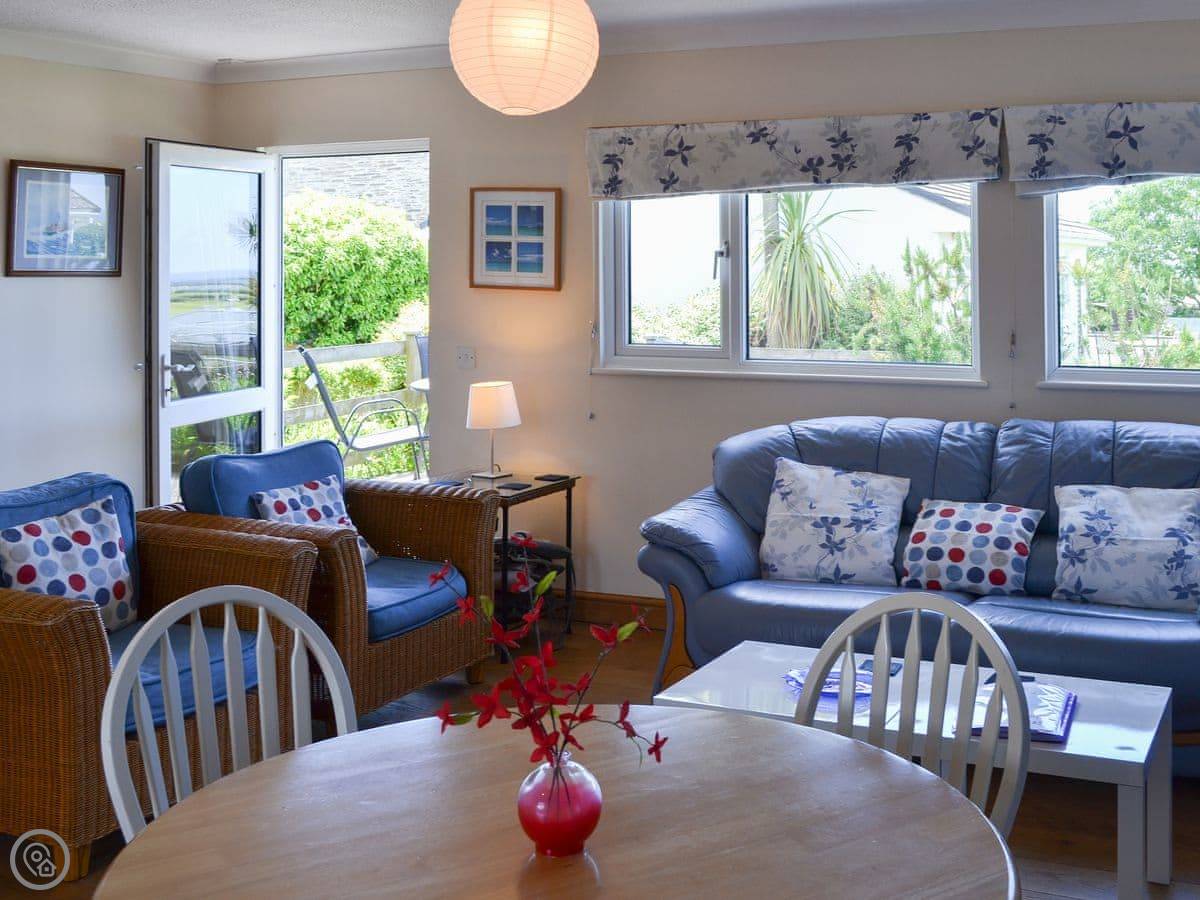 Treyarnon is in Penrose, a couple of miles inland from the coast. It's a detached bungalow, so everything is on one level. You have your own patio at the back.
