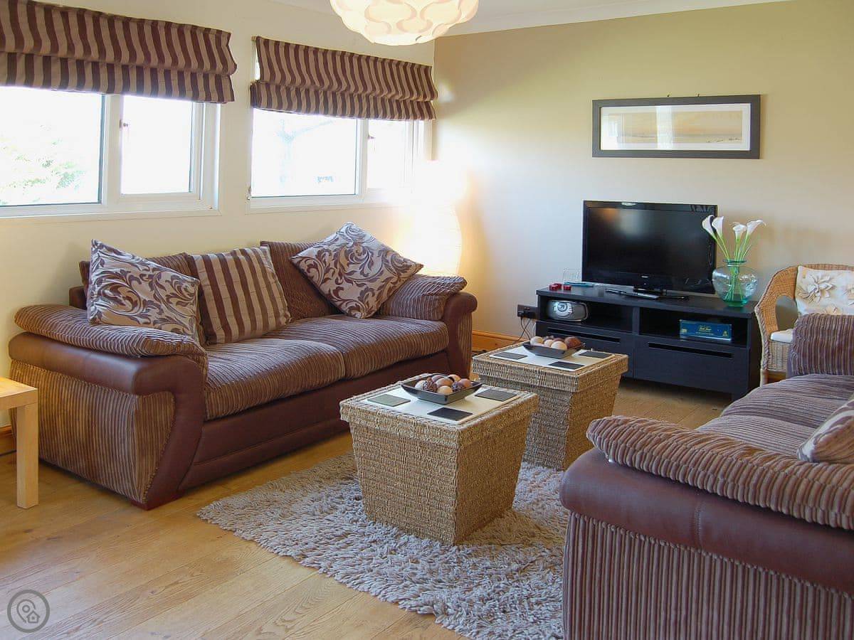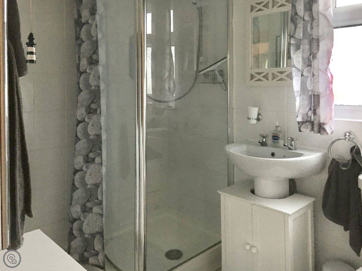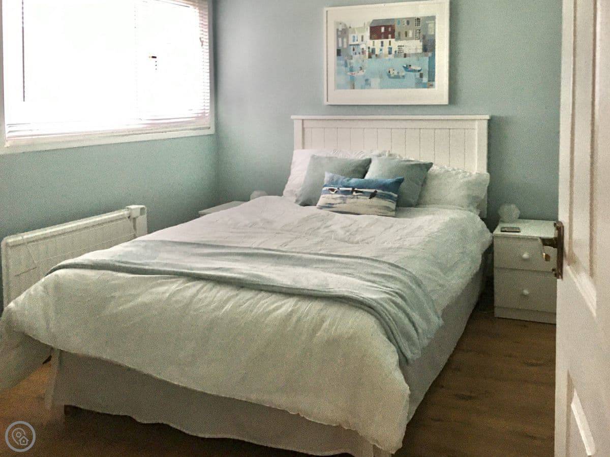 It sleeps four. Two bedrooms, one bathroom. It's got a 3 Star rating. That means it's clean and has everything you need, but it's not a show home. Wi-Fi works fine now, and there's a smart TV.