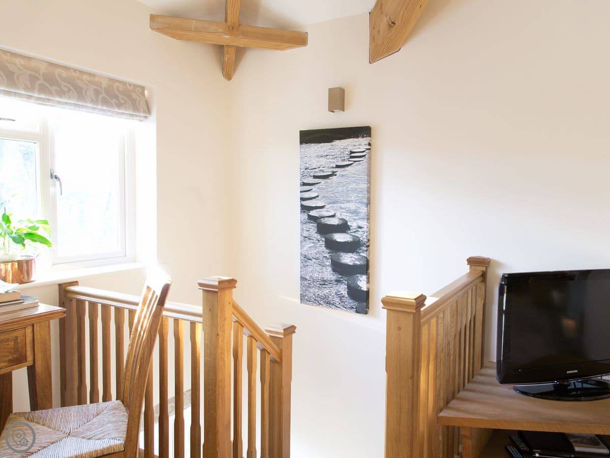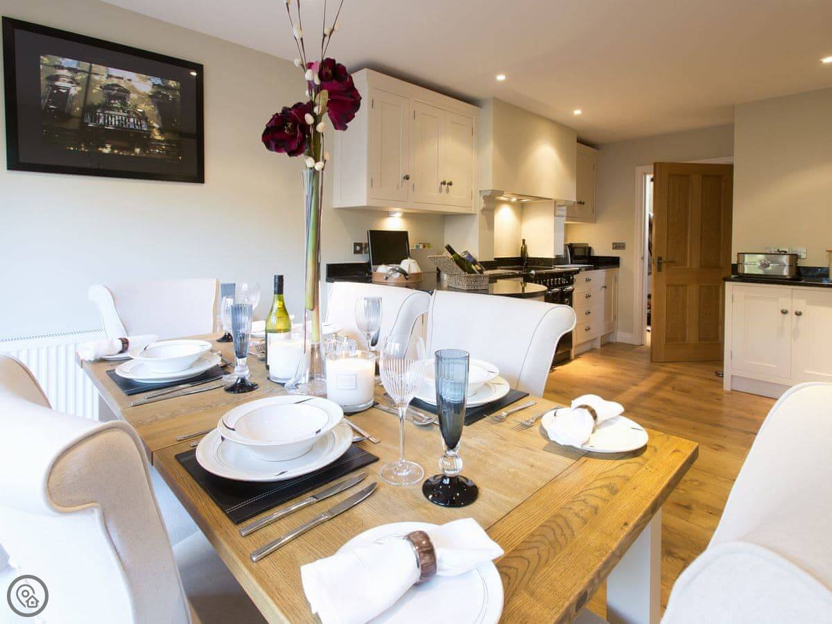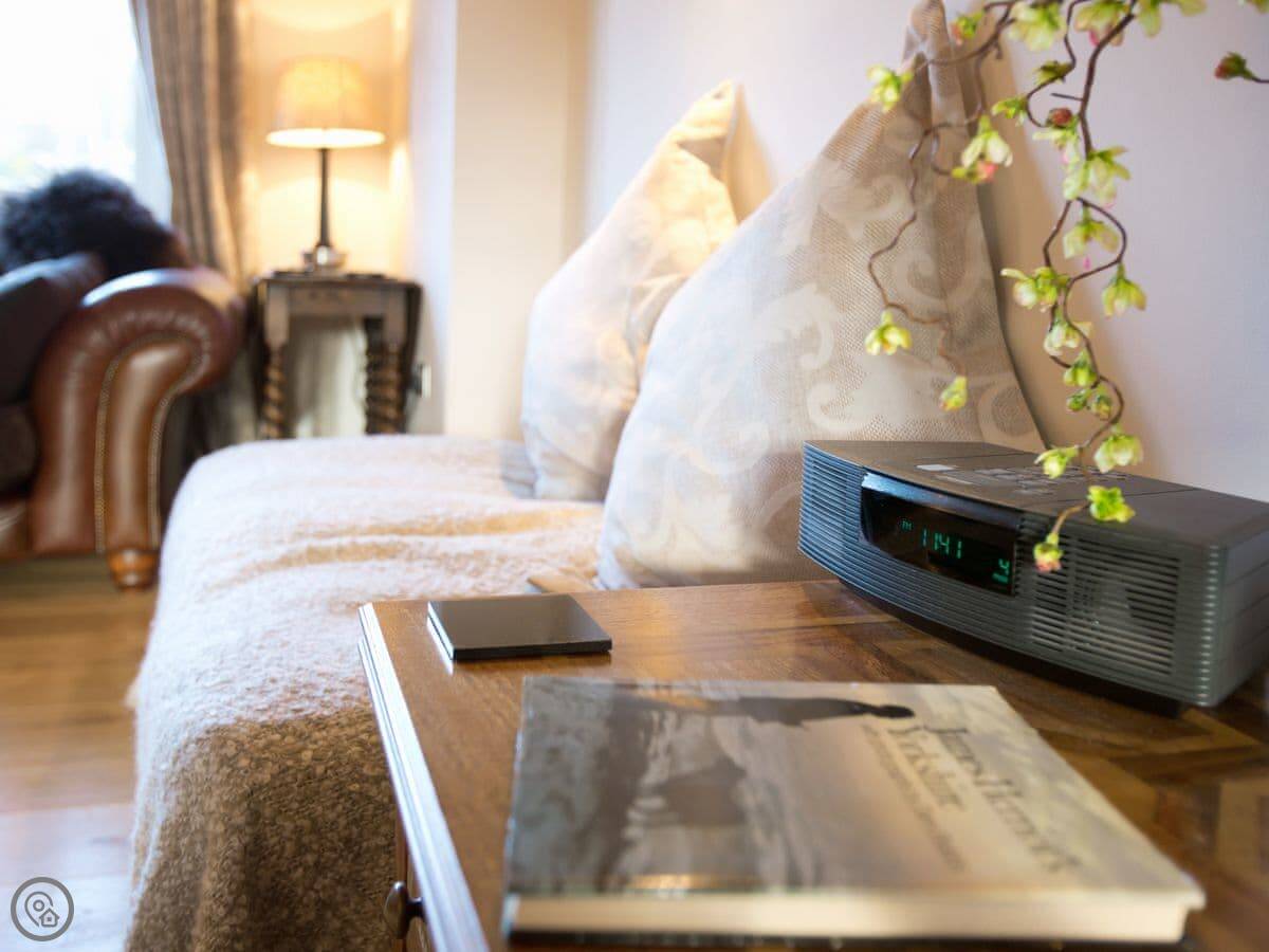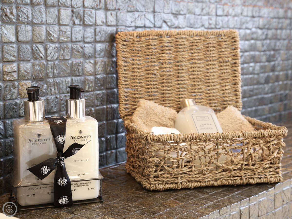 It's for two people. One bedroom, one bathroom. It's got a 5 Star rating, which means it's been done up to a high spec. An interior architect designed it, so everything fits and works together. There's a welcome pack with local bits and a bottle of wine when you arrive. Robes and toiletries are provided.
