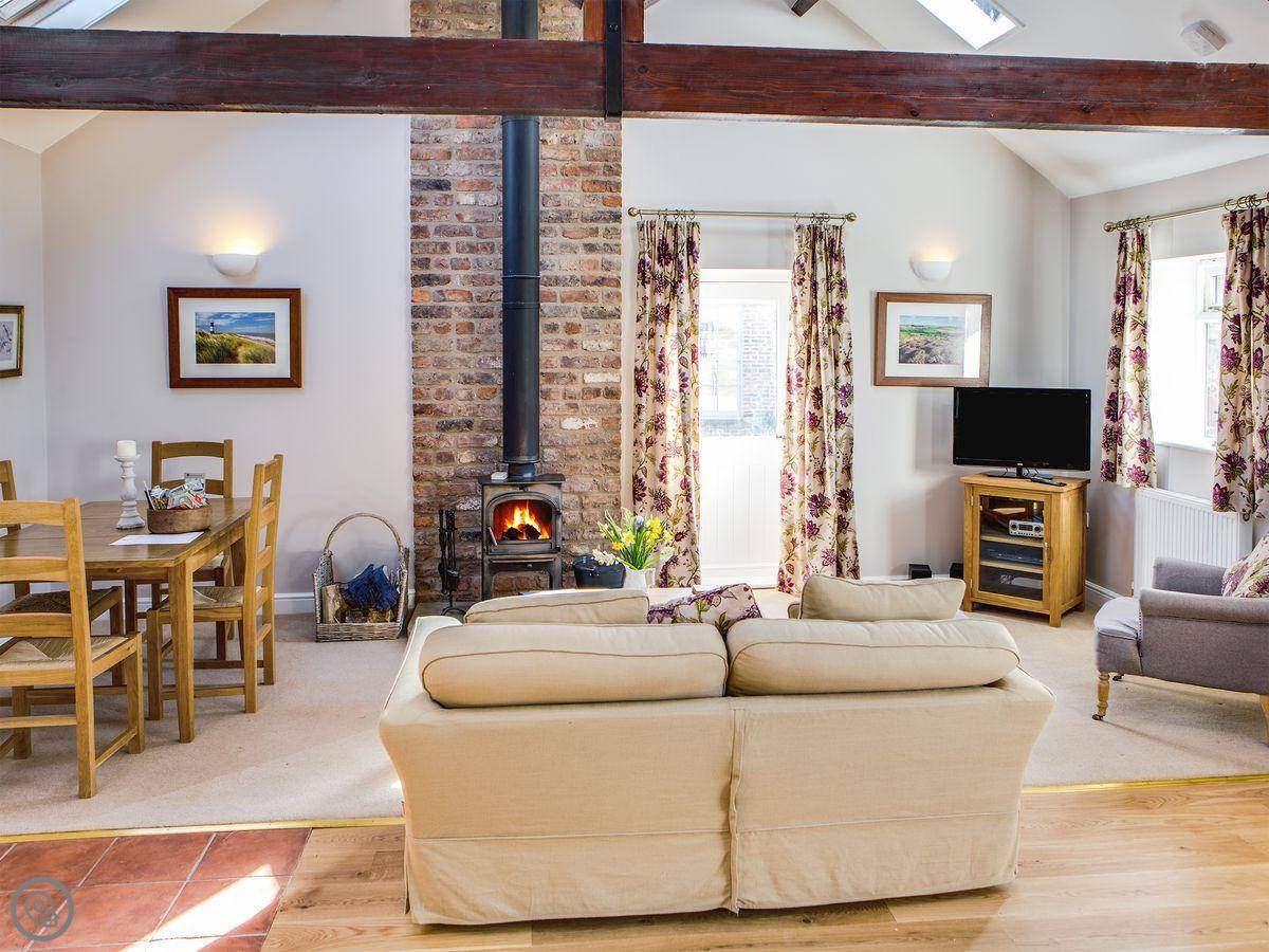 It's got a 4 Star rating. The place is done to a high standard, it's comfortable and clean. Everything is on the ground floor, which is useful. It's open-plan, so the living, dining, and kitchen area is all one room. There's a wood burner for cooler evenings. You can park right outside.