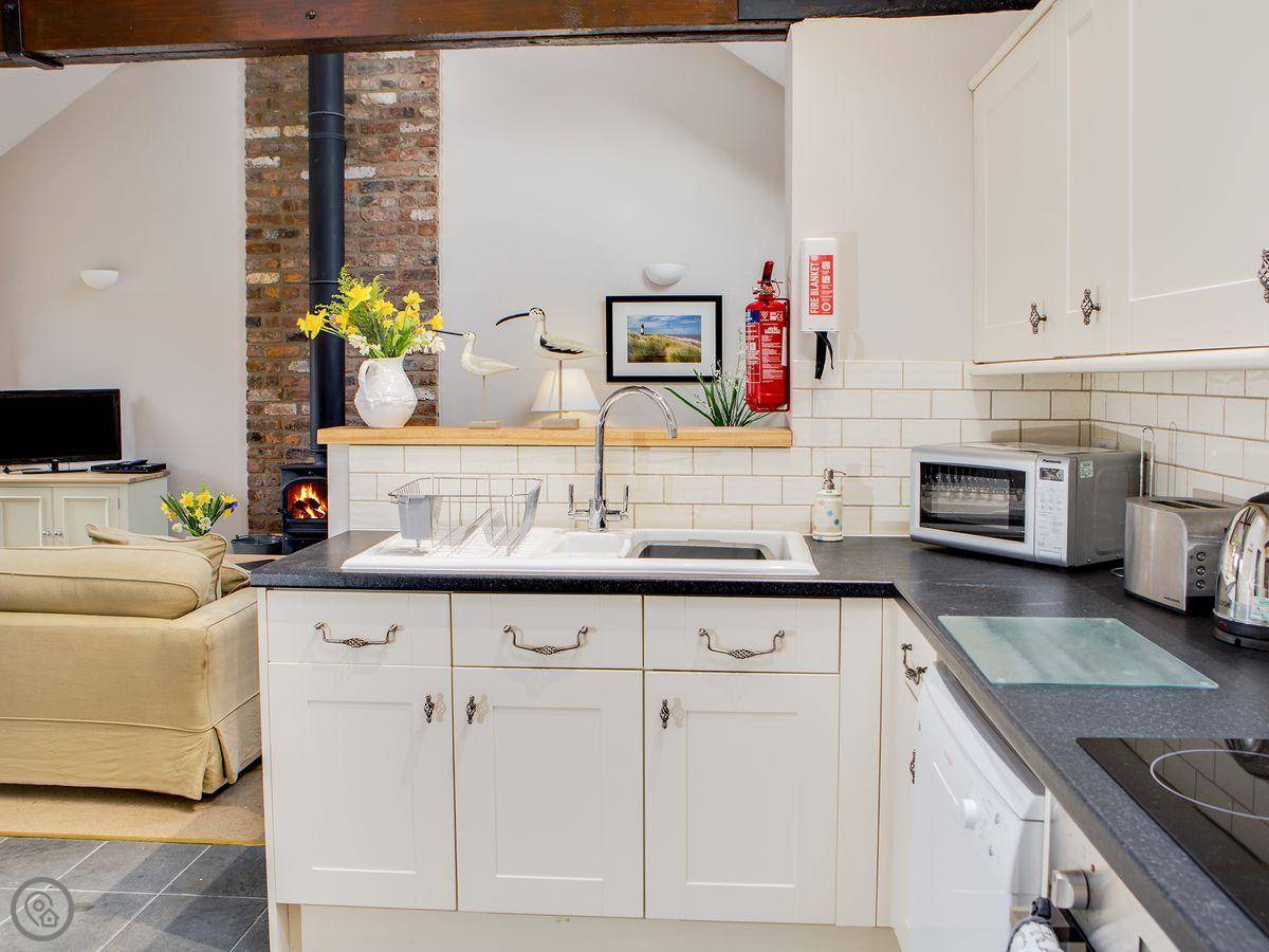 The cottage sleeps three. Two bedrooms, one bathroom. It’s got a 4 Star rating, which means it’s well kept. It’s open plan downstairs. There’s a wood burner for cooler evenings, and parking right outside.