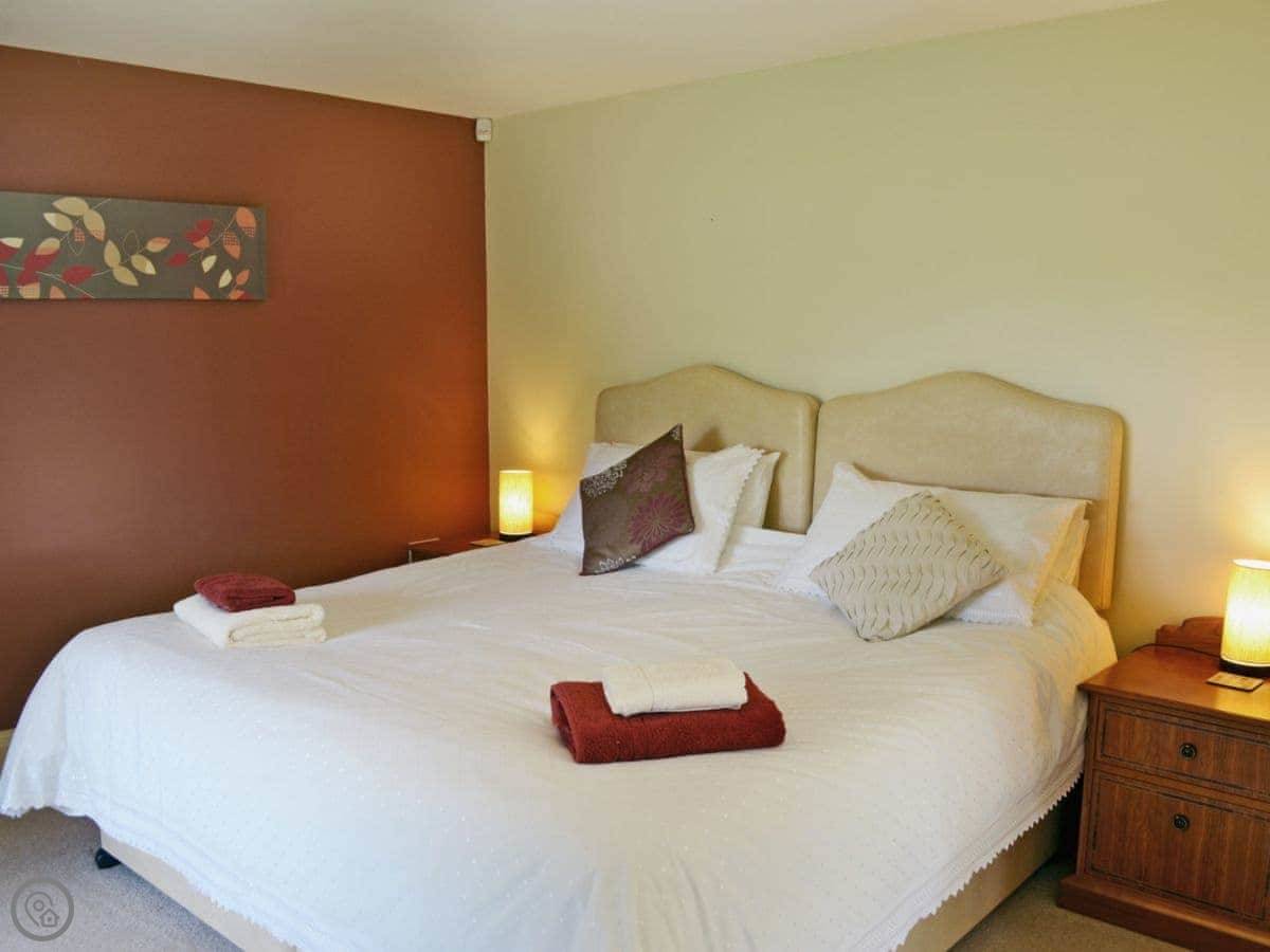 It sleeps five, with two bedrooms and two bathrooms. Both bedrooms have an en suite, which is handy. It has a 5 Star rating, which means it's been finished to a high spec. Everything’s included, towels and bedding. It’s got underfloor heating throughout, run from renewable energy.