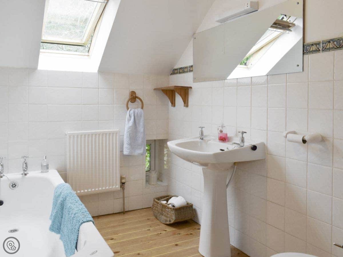 Inside, it's got what you'd need. Washing machine, dishwasher, WiFi, TV. Bedding and towels are included. It's a 4 Star place, so it's comfortable and well kept. You can bring up to two dogs.