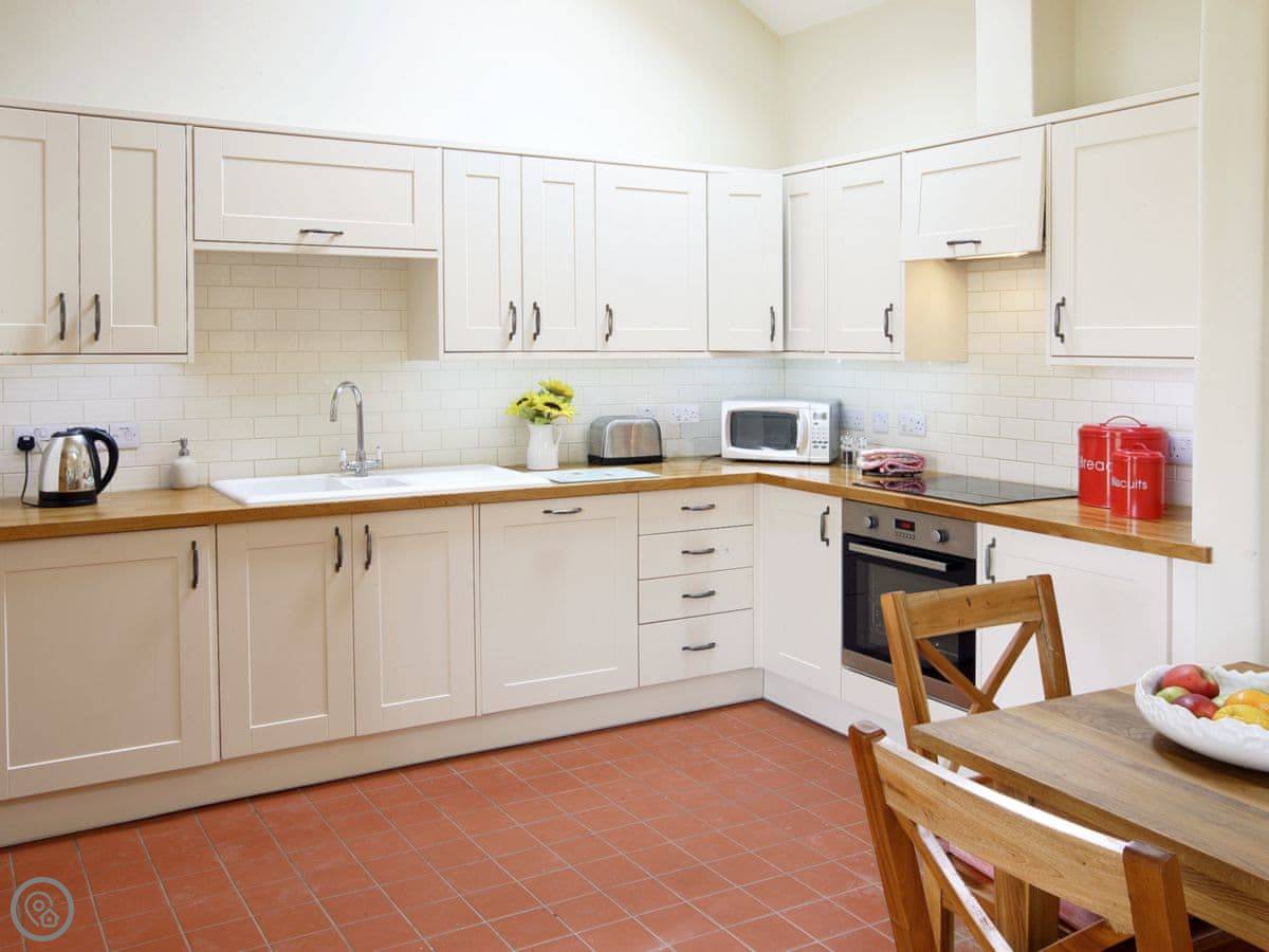 The cottage has an open plan living area with a wood burning stove. There's a dishwasher and a washing machine. Outside there's an enclosed garden with a patio and a barbecue. You can park on site, and there's an electric vehicle charger.
