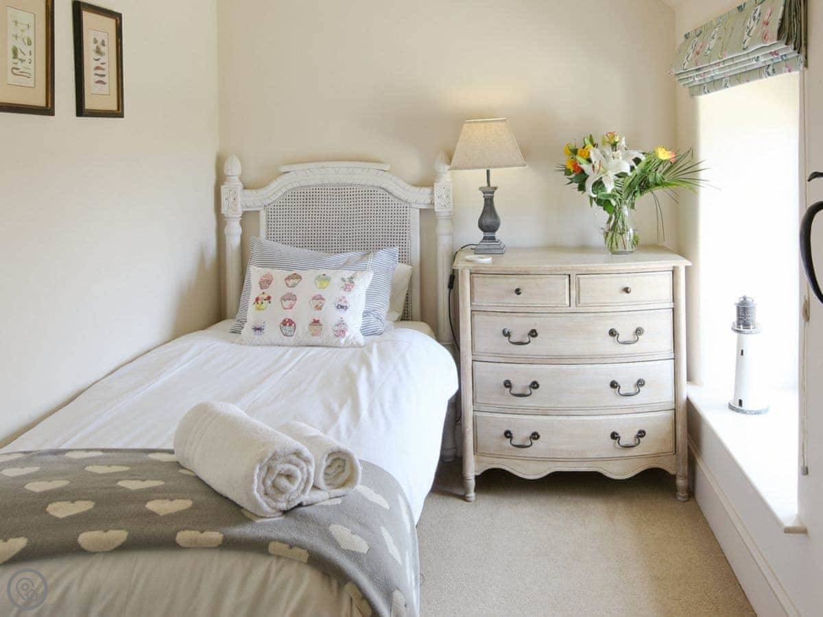 It sleeps four. Three bedrooms, two bathrooms. It's got a 4 Star rating, which means it's well looked after and comfortable. We take one well-behaved dog.