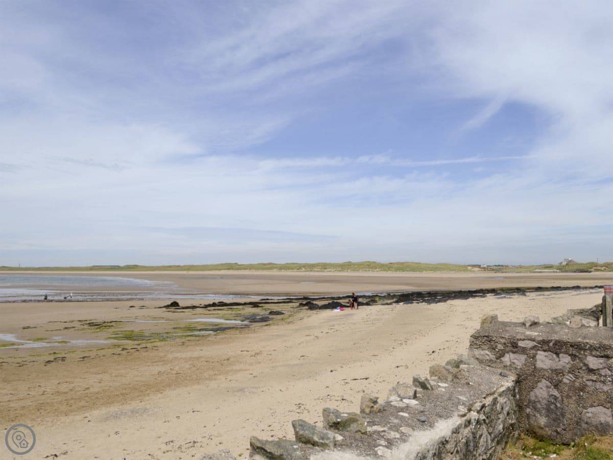 This spacious detached bungalow enjoys direct access to Rhosneigr’s vast sands from its own garden, and a large living room with patio doors overlooking the sea. A popular venue for wind-surfers, the beach offers swimming, as well as canoeing and sand-yacht racing. Rhosneigr’s shops, pubs and restaurant are within walking distance, with riding, golf and sailing nearby. A sea zoo, nature reserves, historic castles and museums can all be found on Anglesey, whilst the Snowdonia National Park is within easy reach by car. Bangor 20 miles. Shops 150 yards and pub 200 yards.