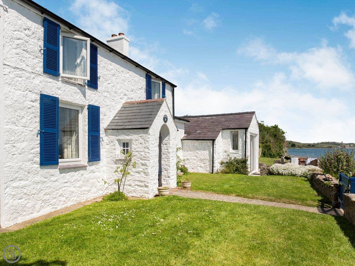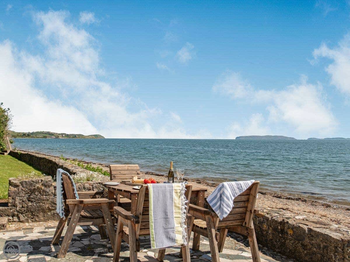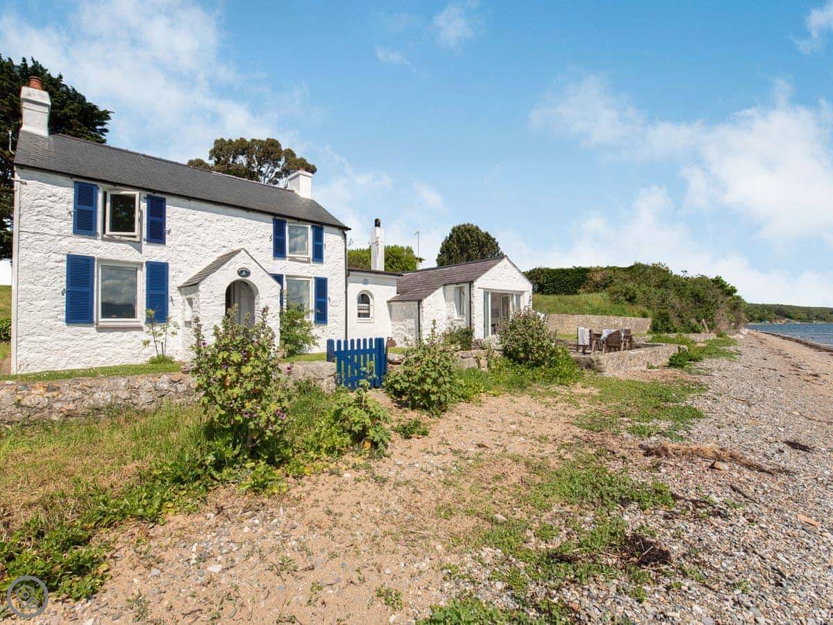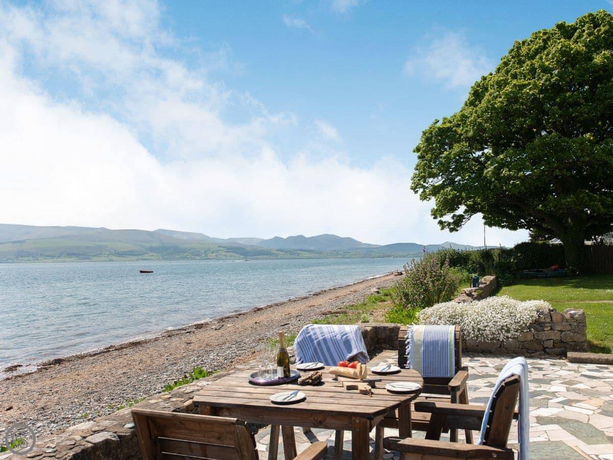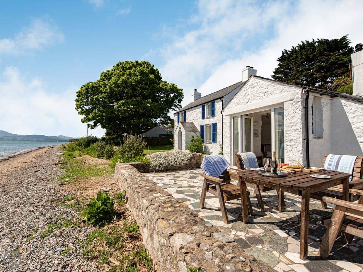 Blue Sails is on the water in Fryars Bay on Anglesey. It's a traditional stone cottage, right on the edge of the beach. The patio gets close enough that the waves can splash it when the tide's in.
