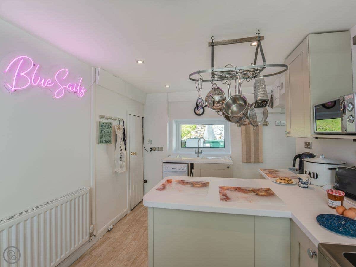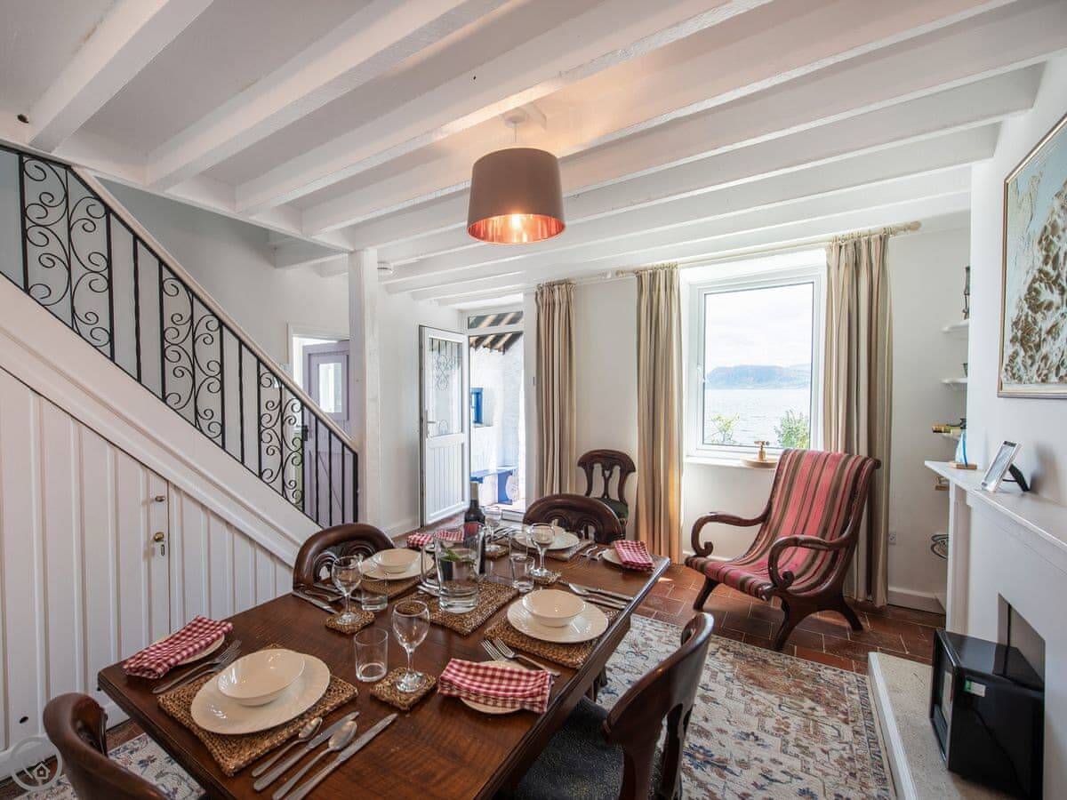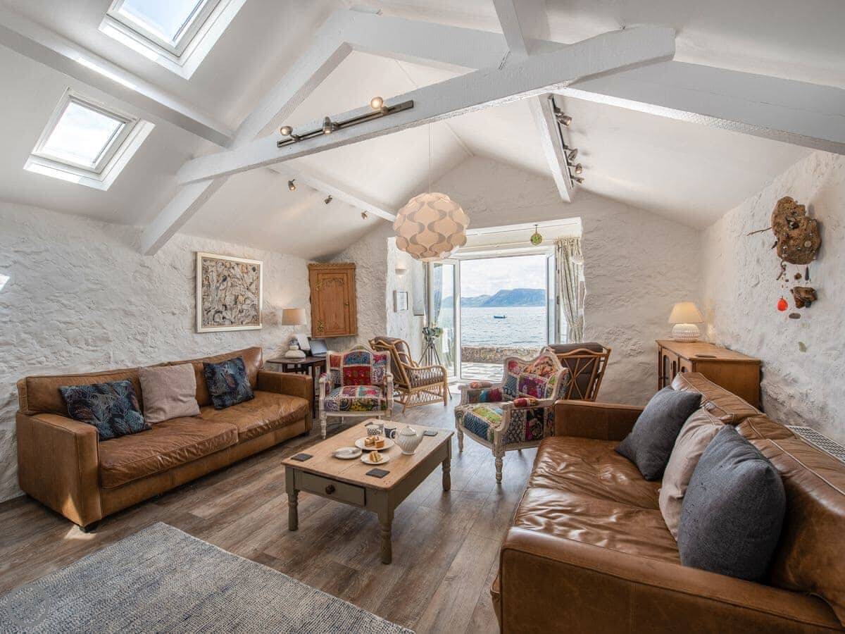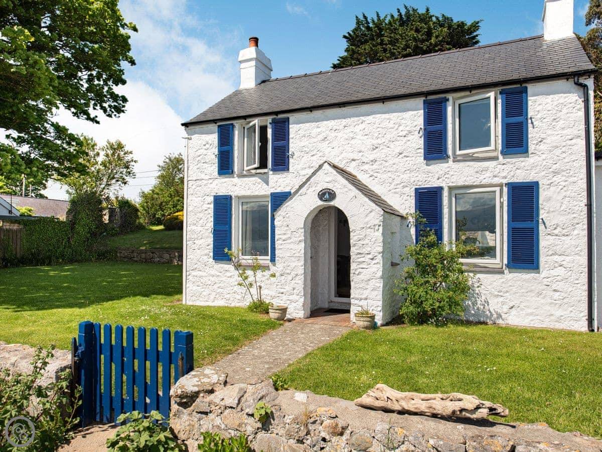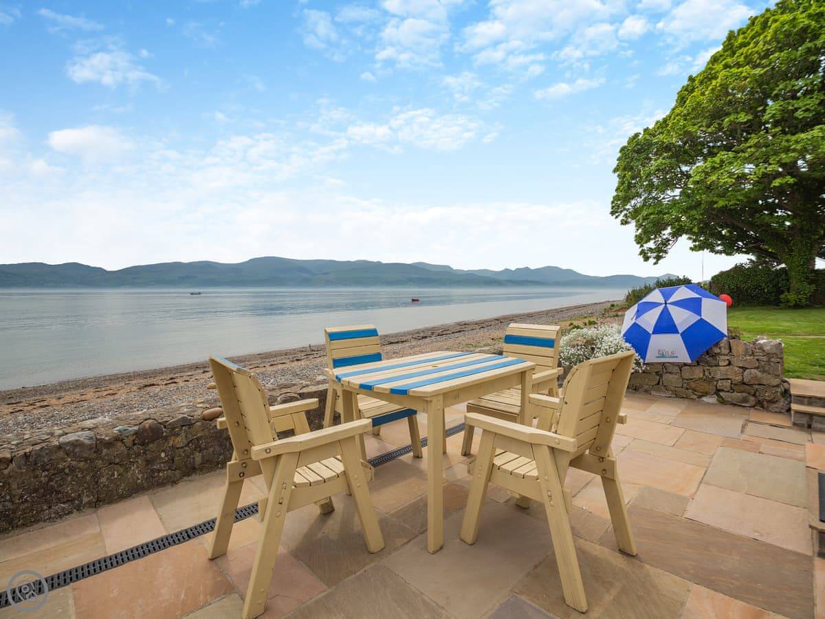 Blue Sails is on the water in Fryars Bay on Anglesey. It's a traditional stone cottage, right on the edge of the beach. The patio gets close enough that the waves can splash it when the tide's in.