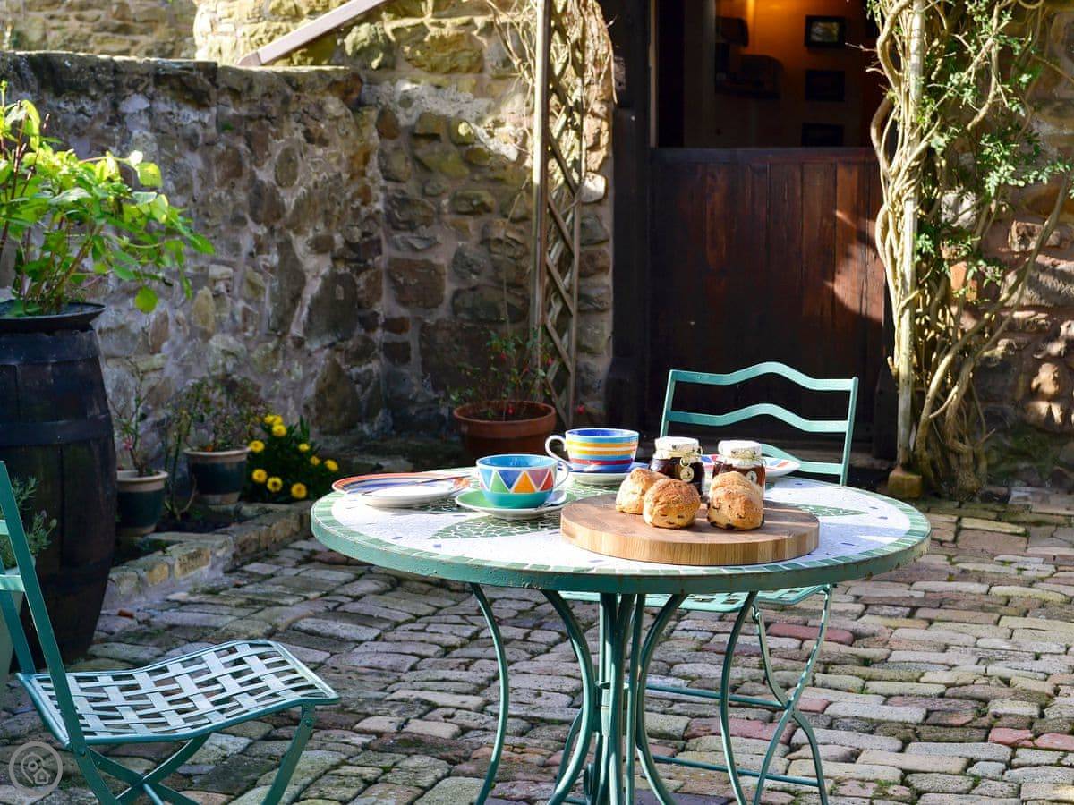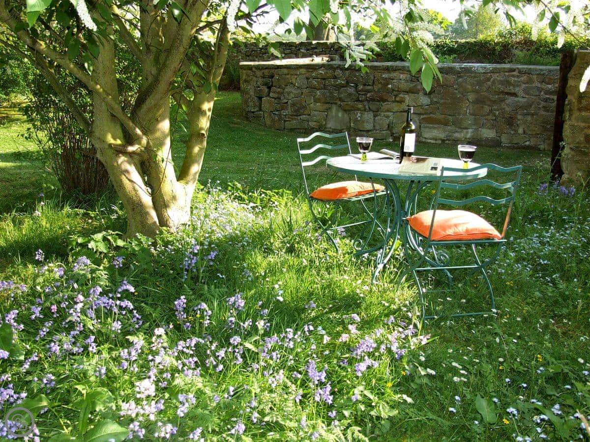 Outside, you've got a little walled terrace just for you. There's a small herb garden, and then a gate opens into our paddock. You can sit out there with a drink. It's quiet.