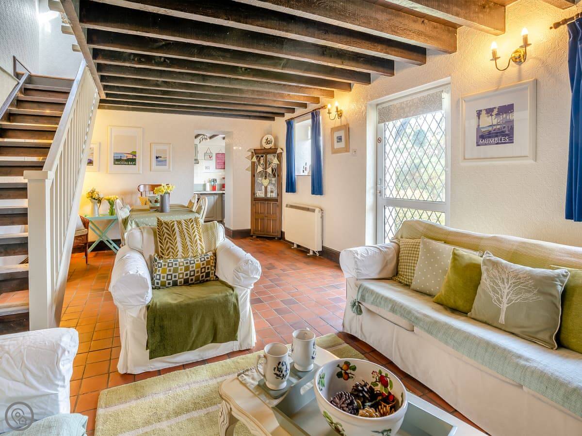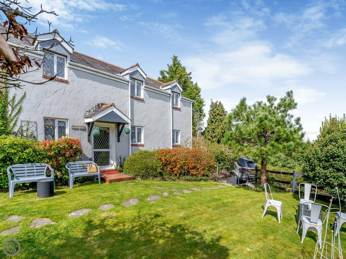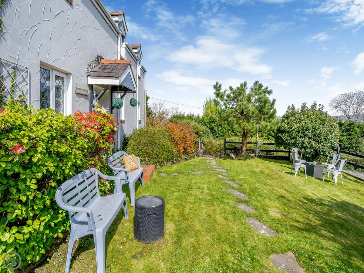 Ty Gwyn is one of a pair of cottages here, about half a mile outside Gowerton. It's in a quiet spot with fields and trees around. The garden is yours to use. We're on about thirty acres, but you don't get the run of the whole farm, just the cottage garden.