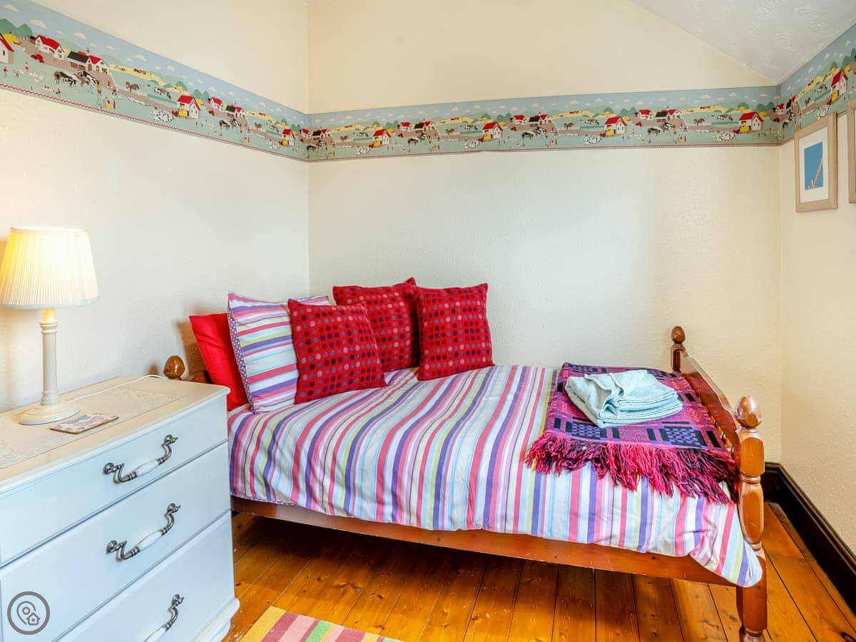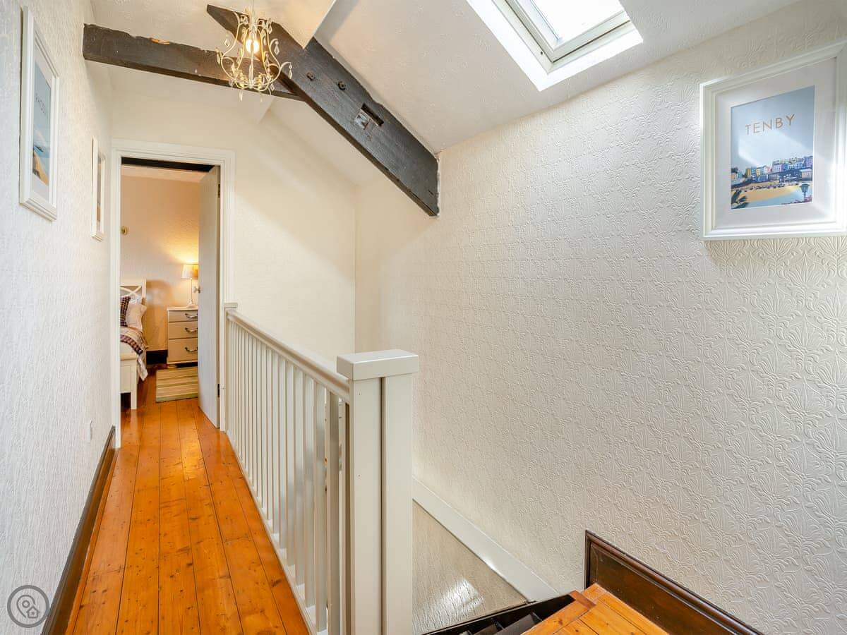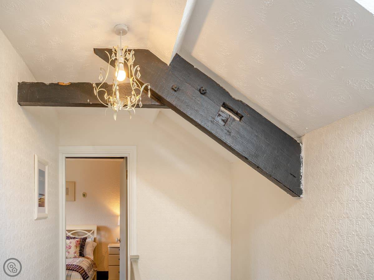 It sleeps five across three bedrooms, and there's one bathroom. It's a 4 Star place, which means it's comfortable and well-equipped. The stairs are regular, not too steep.