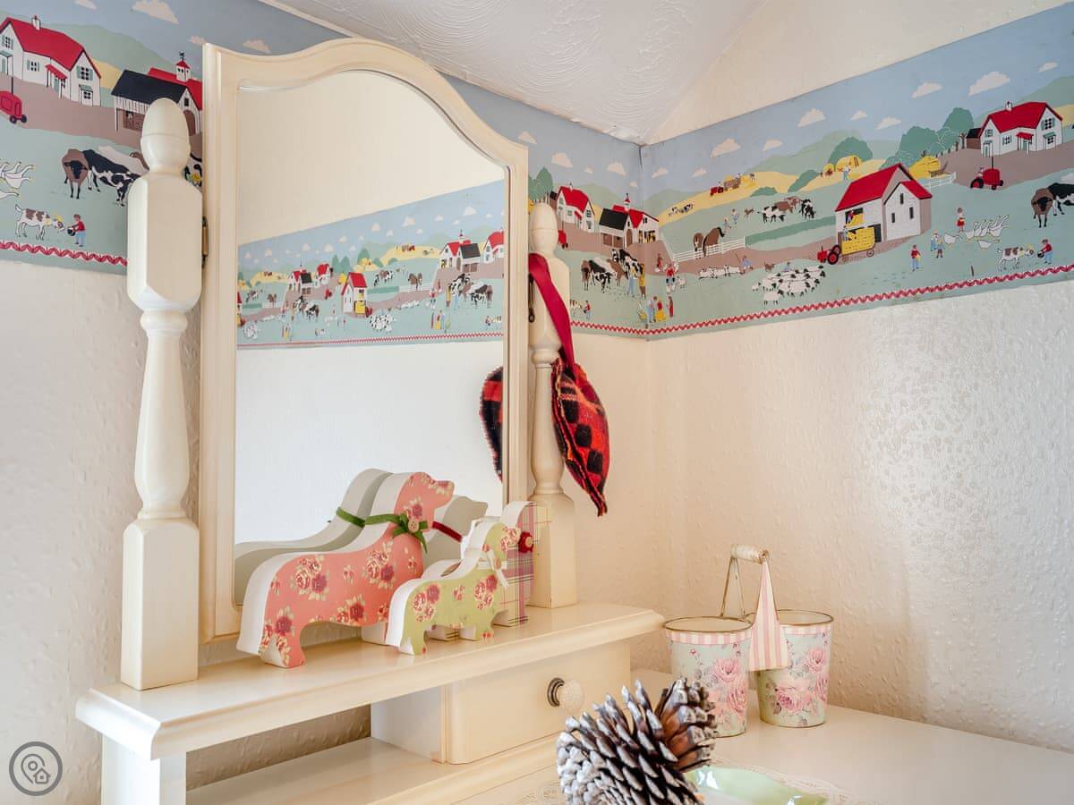 In the cottage, you've got a washing machine, dishwasher, TV, and WiFi. Bedding and towels are included. There's a cot and highchair if you need them. Parking is right outside. No pets, I'm afraid.