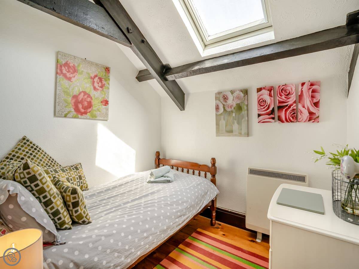 It sleeps three. Two bedrooms upstairs, and a family bathroom. One of the bedrooms is a double, the other is a single. The rating is 4 Star, which means it’s comfortable and well looked after.