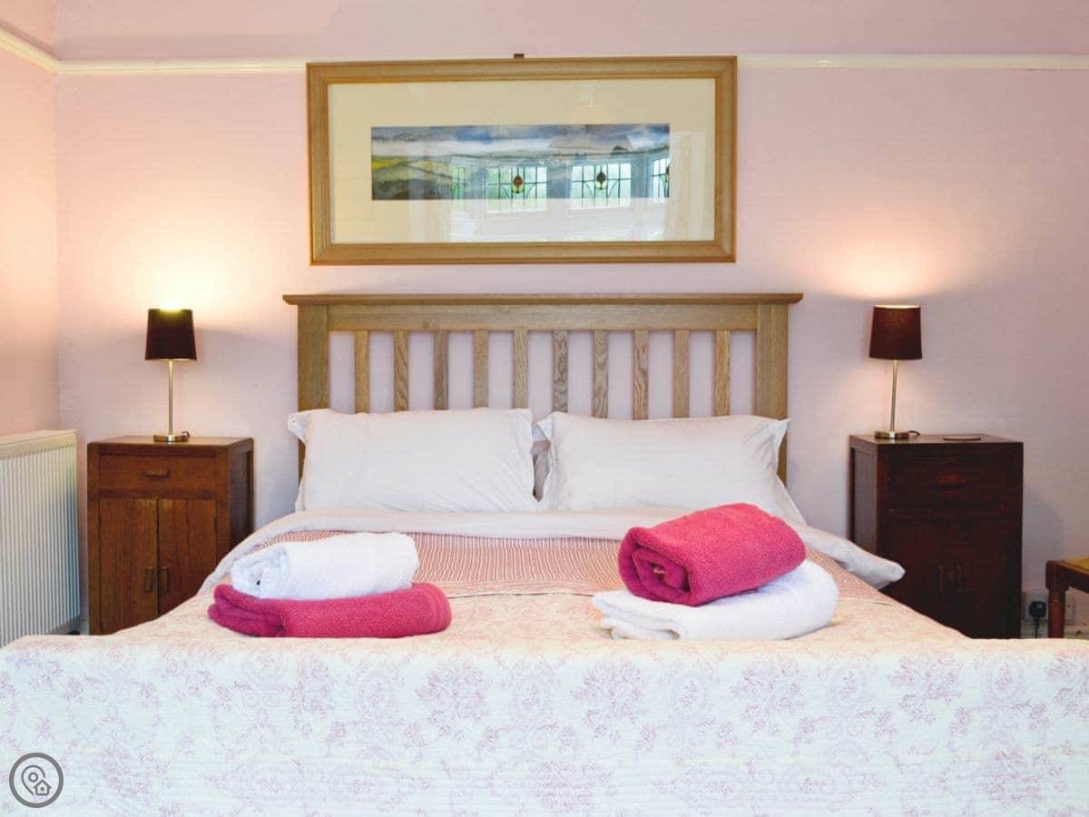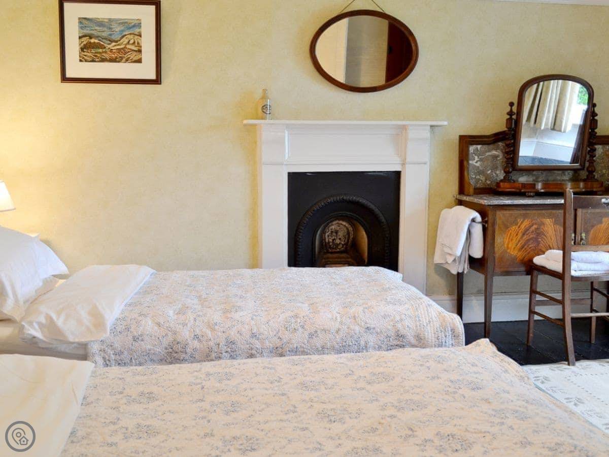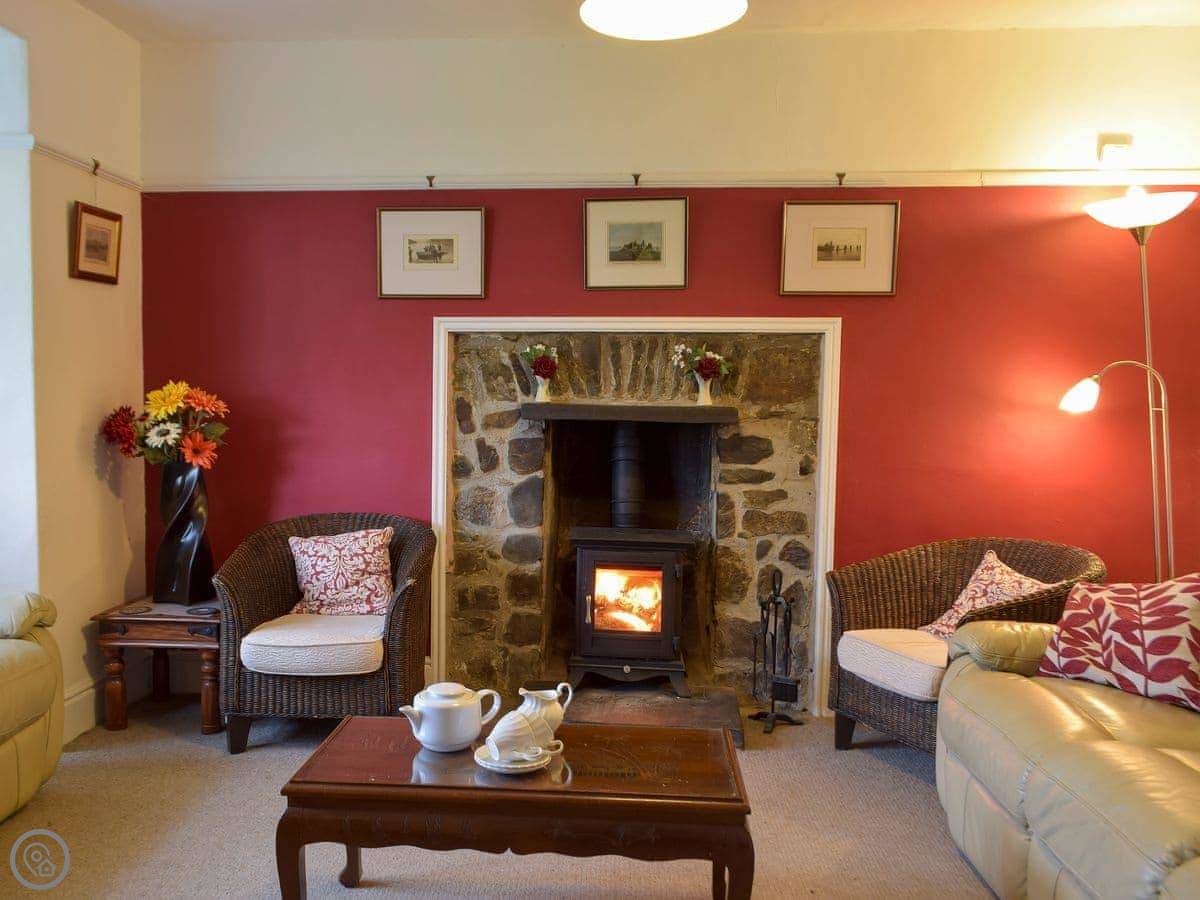It sleeps six. That's in four bedrooms, with two bathrooms. It's got a 3 Star rating. The furniture is traditional, nothing fancy, but it's comfortable and clean. You get the basics covered: TV, WiFi, washing machine, dishwasher. There's a wood burner for cooler evenings.