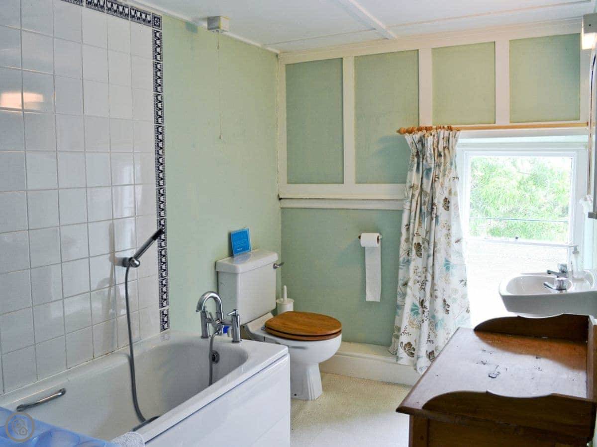 It's about two miles from the beach at Llangrannog. The beach is sandy and the coast here is very clean. The village has a shop, a couple of cafes and pubs. There's a small slipway if you've got a boat. New Quay is a bit further along the coast, maybe fifteen minutes by car. You can get sailing and fishing trips from there.
