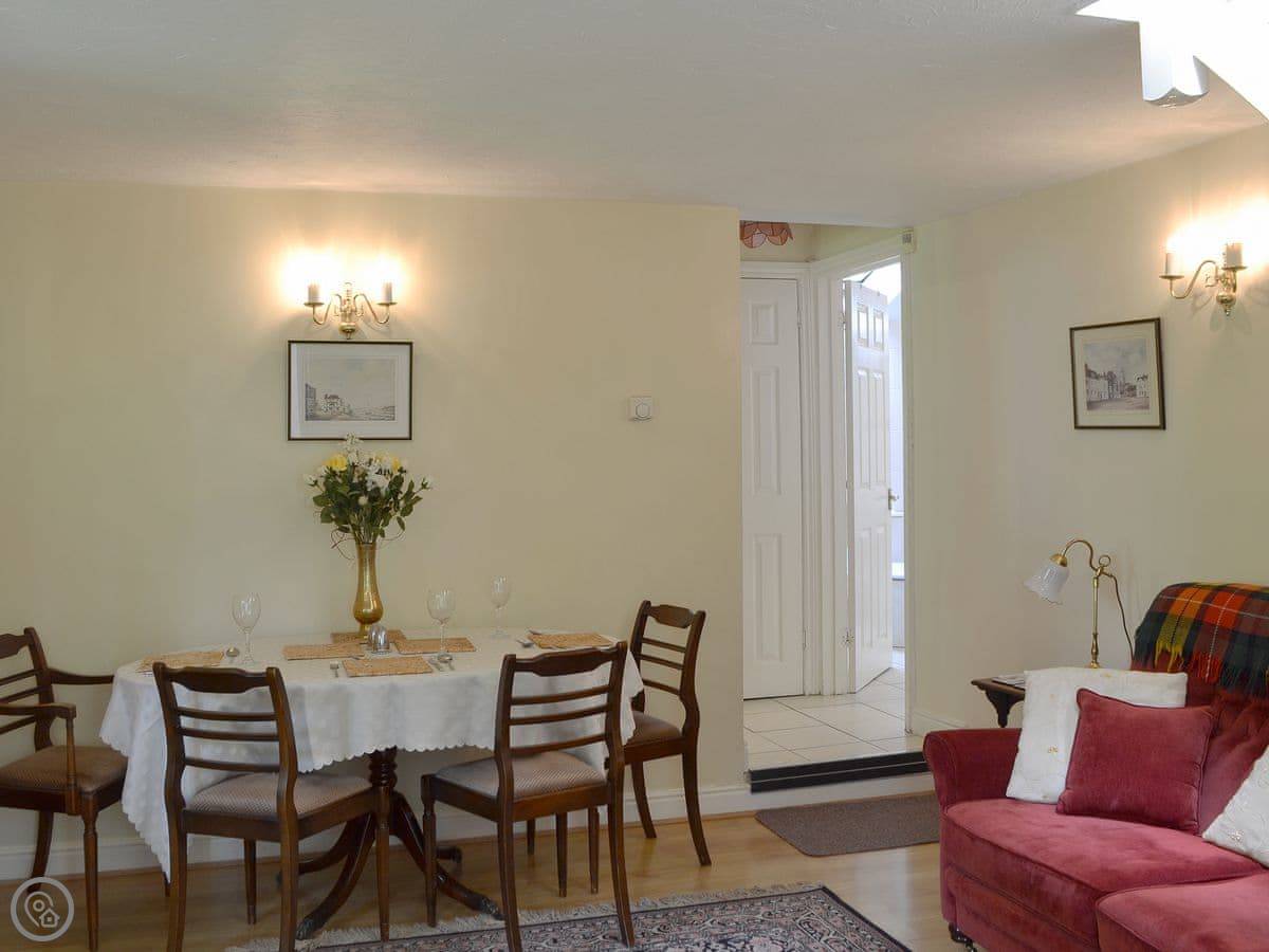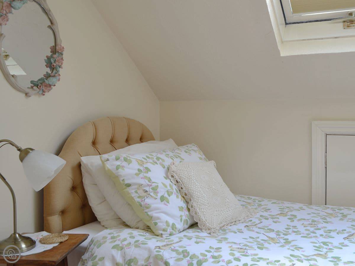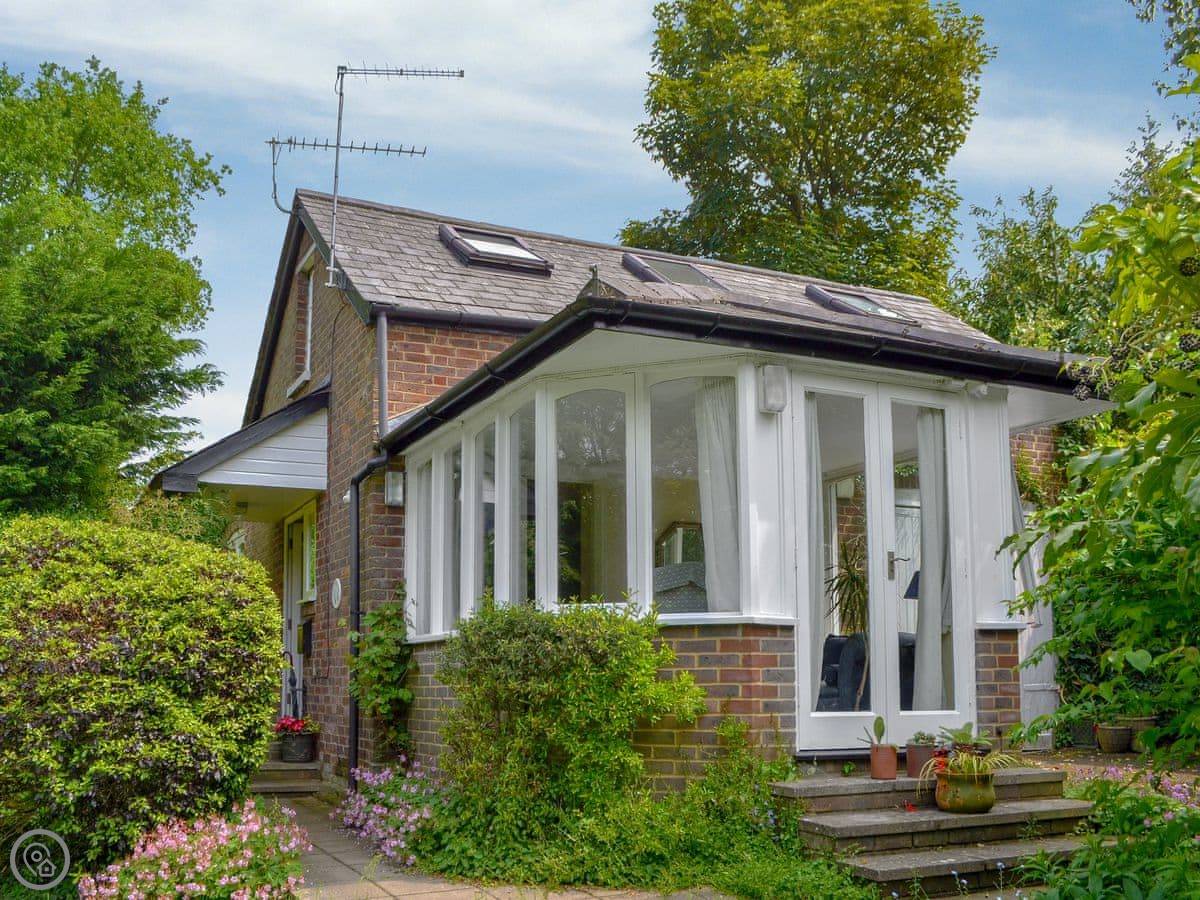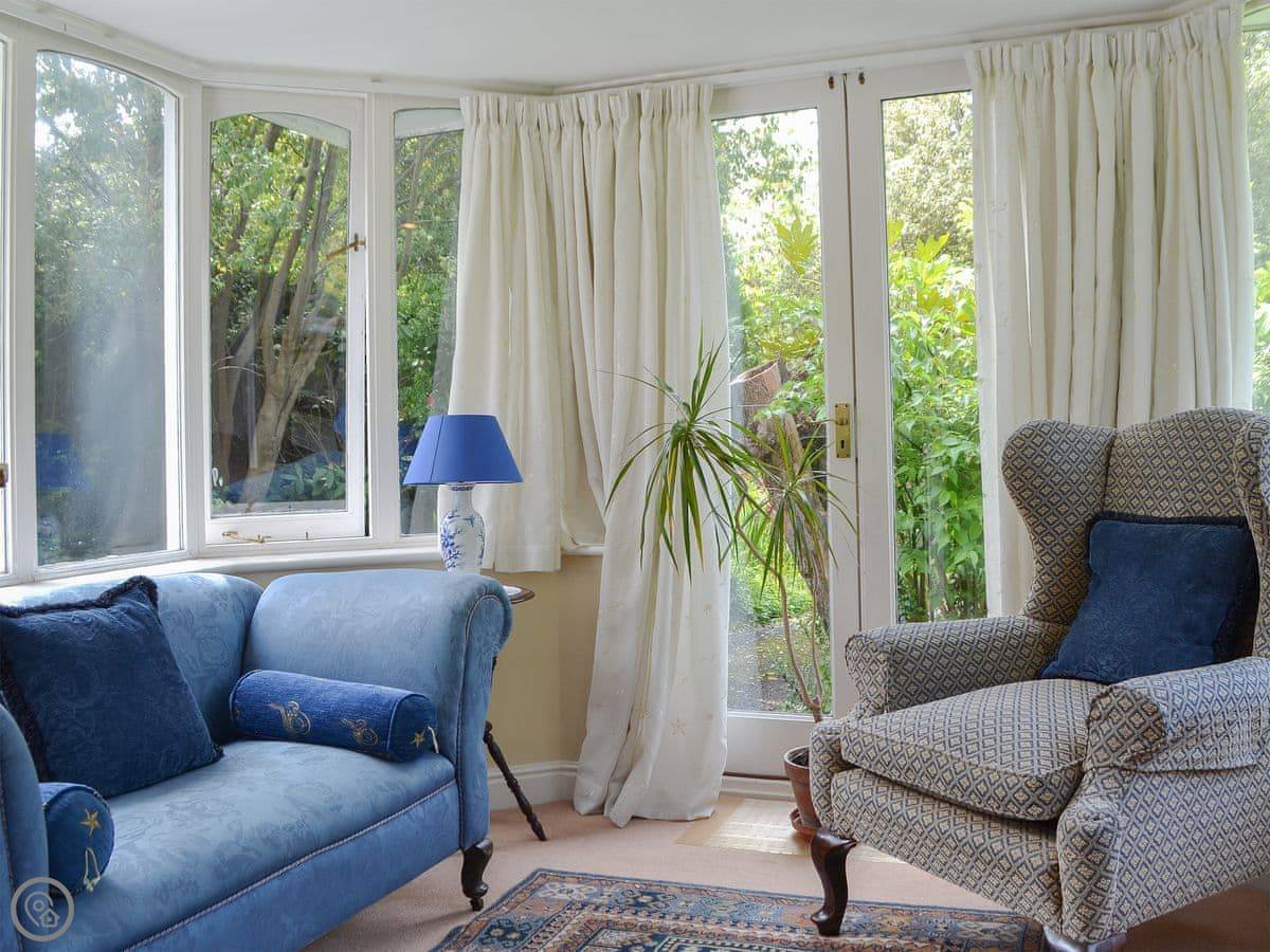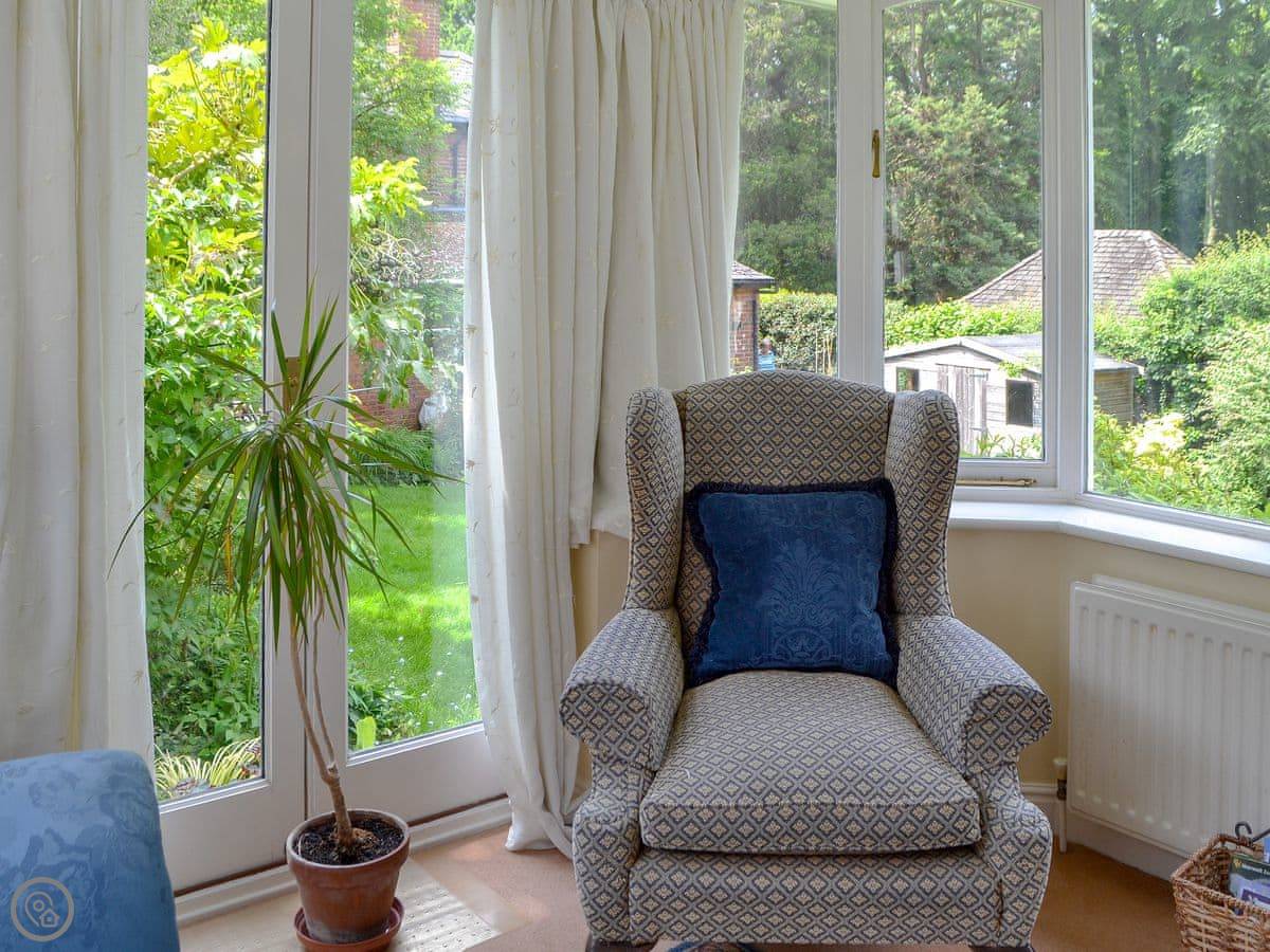 The main room is an interesting shape, with windows on a few sides. It feels bright and you look out into the garden. It's not huge, but it's fine for three people.