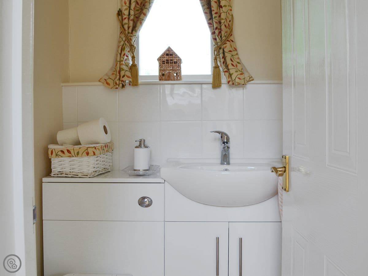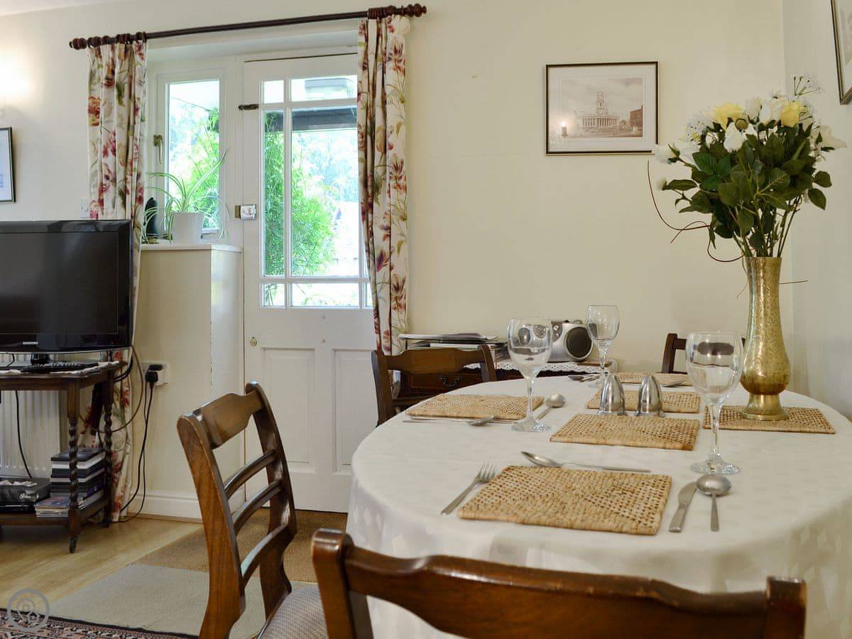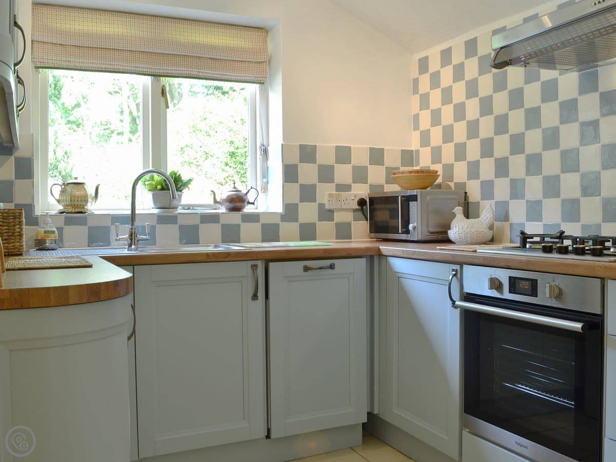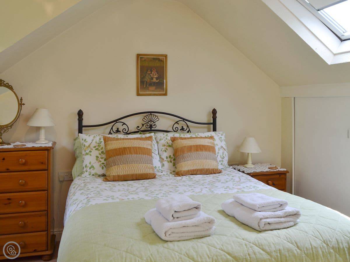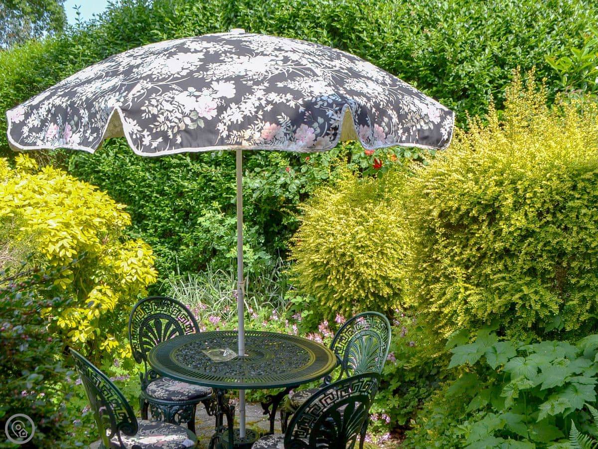 The main room is an interesting shape, with windows on a few sides. It feels bright and you look out into the garden. It's not huge, but it's fine for three people.