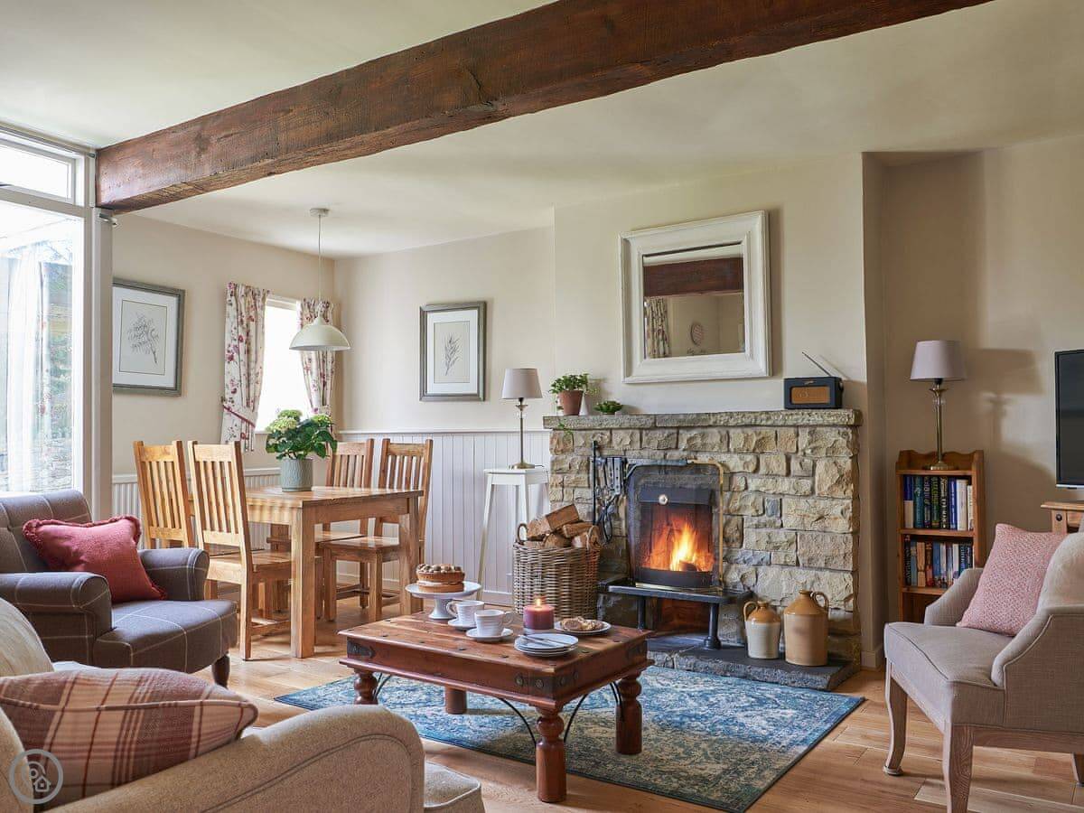 For facilities, you've got pretty much everything. Washing machine, dishwasher, TV, WiFi. There's a wood burner and they provide the logs. Parking is right there. Bedding and towels are included. They've got a cot and highchair if you need them. Sorry, no pets.