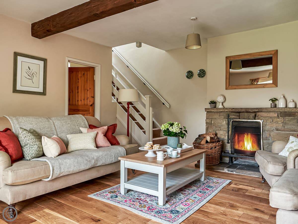 In terms of what's here: there's a woodburning stove with free logs, a dishwasher, washing machine, TV, and WiFi. Bedding and towels are included. There's a cot and highchair if you need them. Parking is on site. There's a shared play area for children in the gardens. Sorry, no pets.