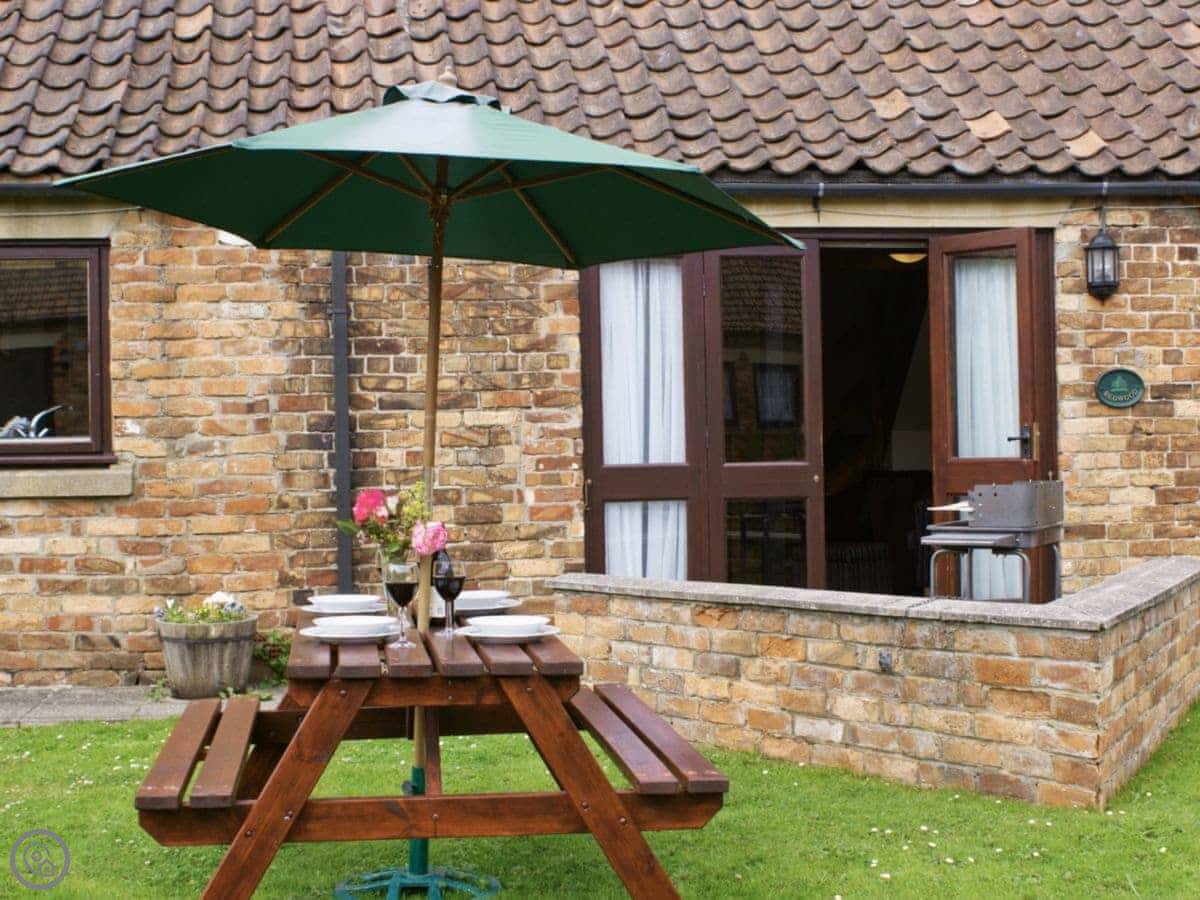 Redwood is one of six cottages at Killerby Old Hall, near Cayton Bay in North Yorkshire. It's a three-bedroom place that sleeps six. There's one bathroom.