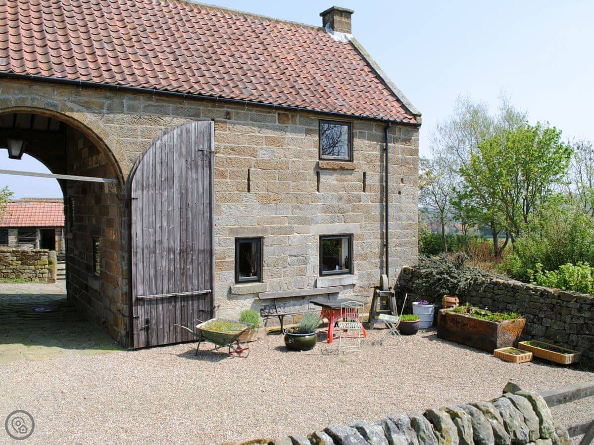 The Old Sheaf Store is a two-bedroom cottage in Glaisdale. It's part of Red House Farm, which is a working farm with some B&B rooms. Your cottage is separate, with its own front door and a patio area.