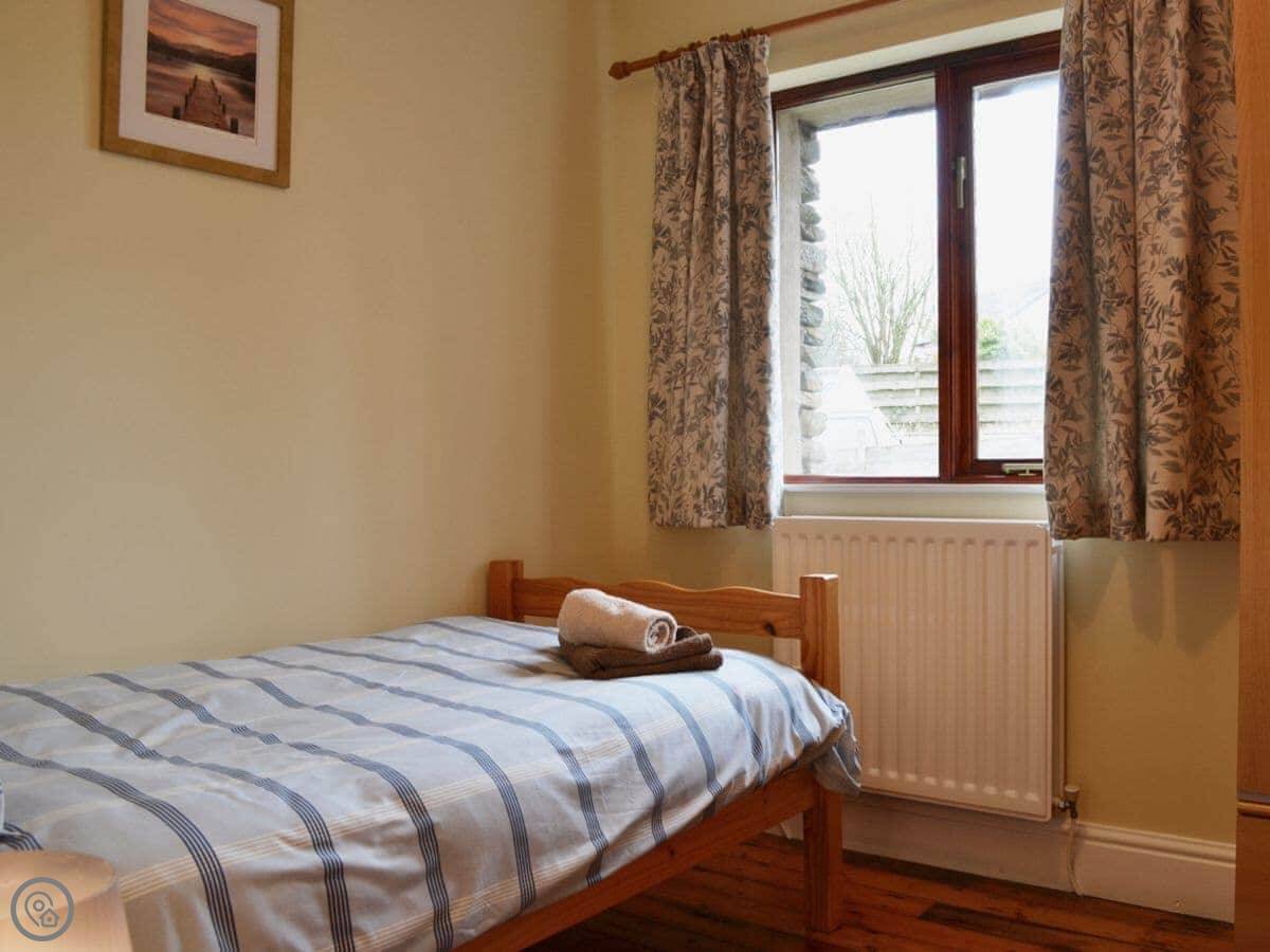 It sleeps seven. Four bedrooms, two bathrooms. It's a 4 Star, so it's comfortable and modern inside, but it's still a proper slate house. There's a log fire for the evenings.