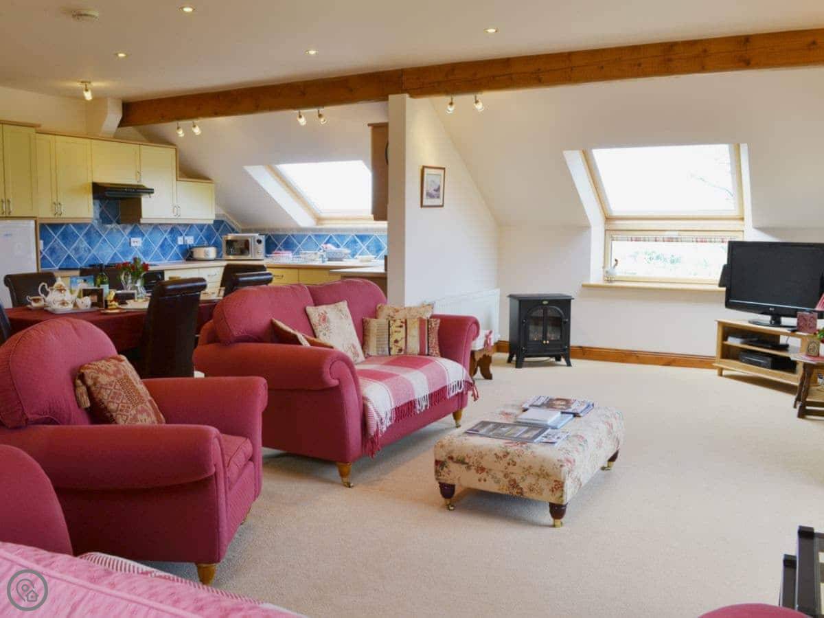 Peacefully located and surrounded by stunning scenery with spectacular views, these delightful cottages have been carefully converted from the barns of a former farm steading. In an Area of Outstanding Natural Beauty, the holiday properties are two in a little group of four, located between Torpenhow and Ireby on the northern fringe of the Lake District. Attractively furnished, well presented and equipped to E. T. C. 5 Star standard, the living accommodation is on the first floor to take advantage of the outstanding views, including stunning sunsets over the Solway. There are pleasant walks and cycle routes from the door along lanes filled with wild flowers and wildlife. Keswick and Cockermouth offer shops, restaurants, galleries and tourist attractions, the former with a leisure pool and the latter with a swimming-pool. Romantic, quiet and peaceful, yet an ideal base for the Lakes, Solway coast, Scottish borders and Hadrian’s Wall. Sailing on nearby Lake Bassenthwaite. For something extra special, Armathwaite Hall Hotel, a 15-minute drive, offers a swimming pool, gym, sauna, Jacuzzi and steam room, perfect for couples or celebrations. Maes Gallery and tea rooms serving food daily is within 2 miles. Ireby is within a mile with a warm, cosy pub with log fire, and serving food daily. Shops 5 miles.