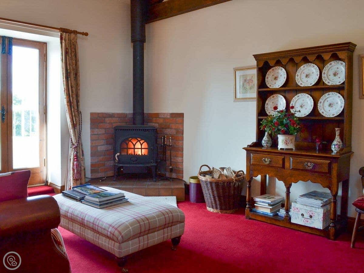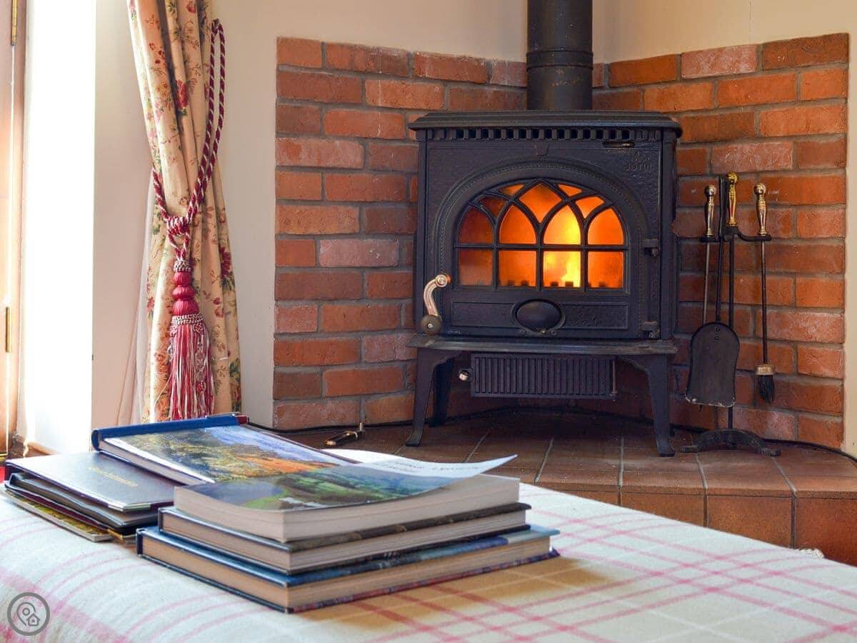 The cottage is rated 5 Star Gold. It means it's well equipped and comfortable. There's a wood burning stove, a dishwasher, and a washing machine. Bedding and towels are included. There's parking right outside.
