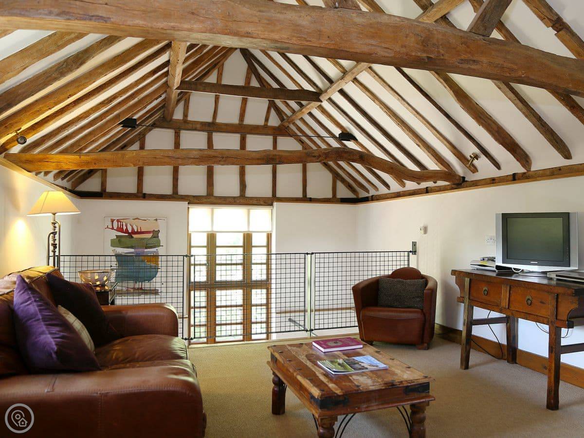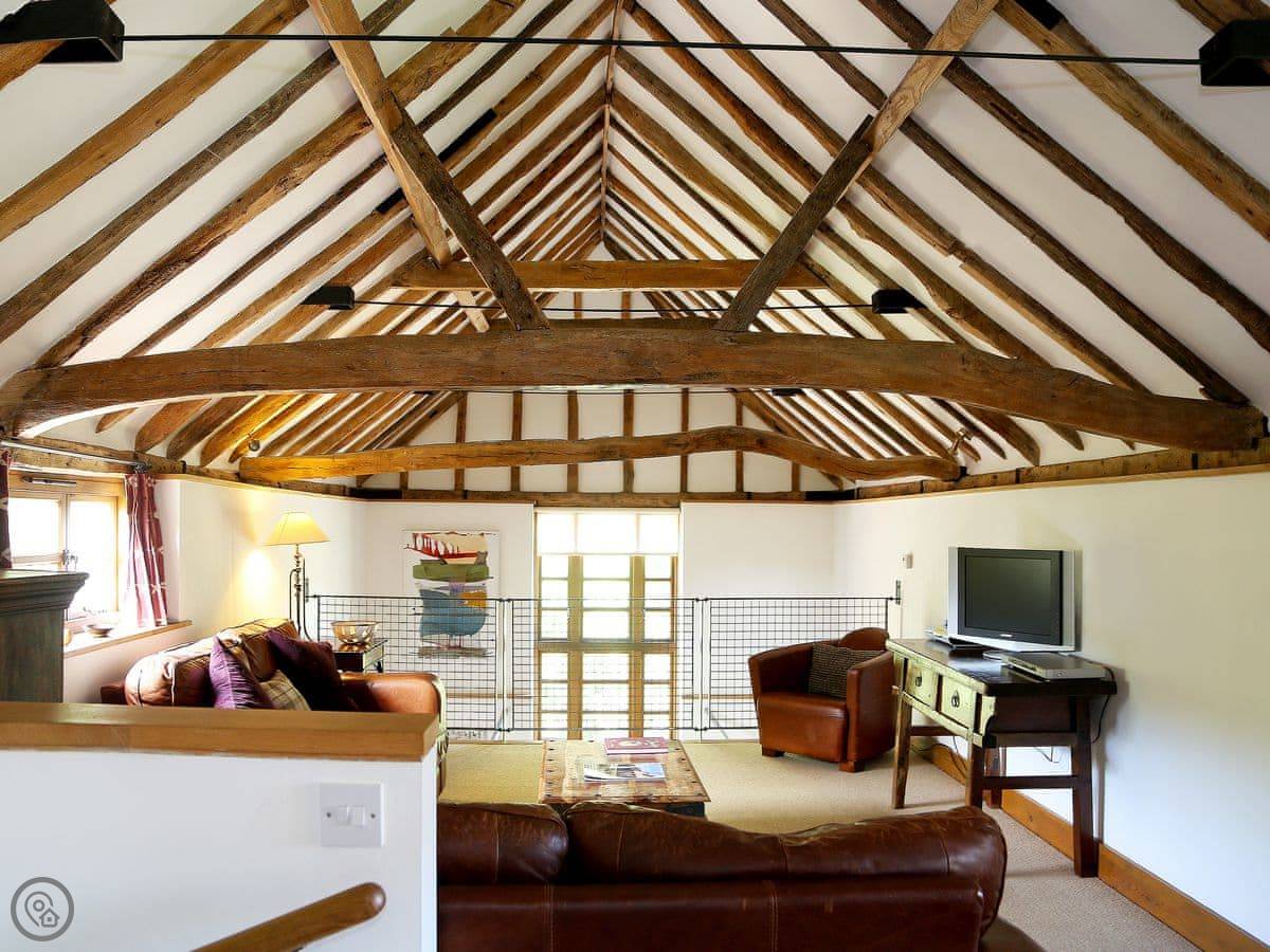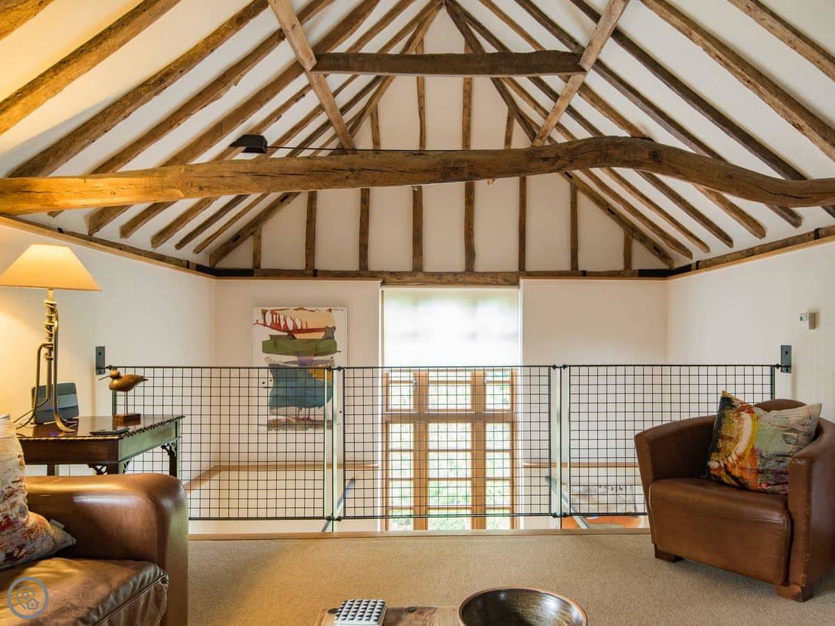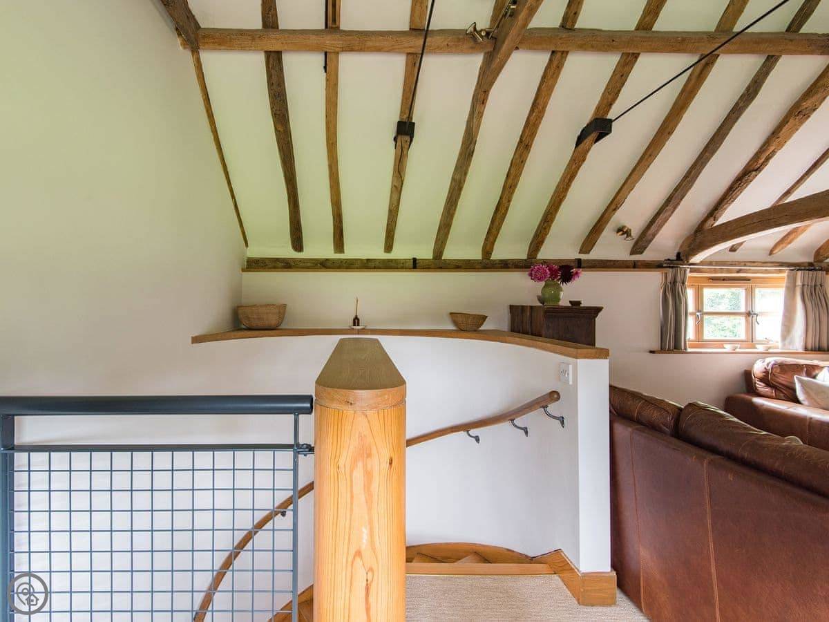 It sleeps four. Two bedrooms, one bathroom. It's a 3 Star place, so it's comfortable and clean but not luxurious. The stairs go up to what they call the galleried living room. It's a big, open space on the first floor, which is a bit unusual.