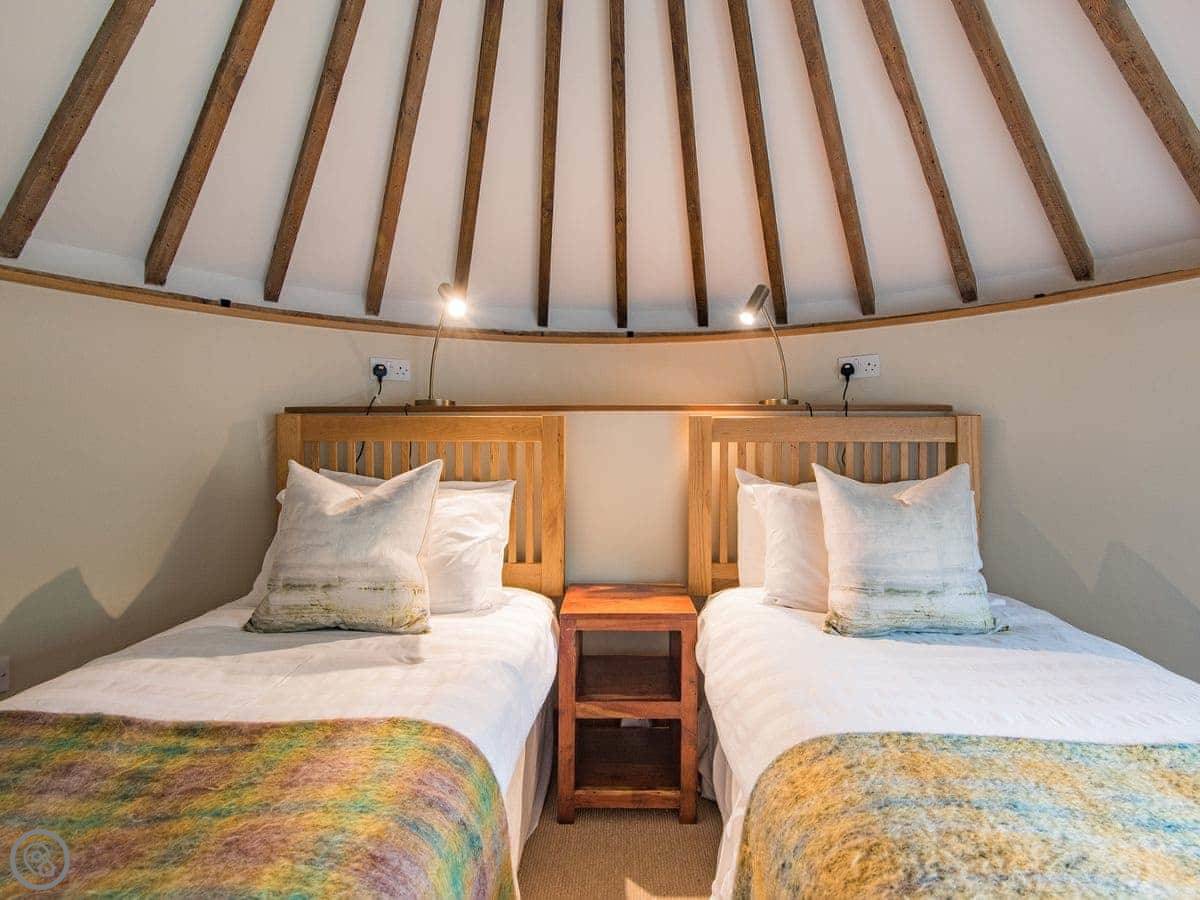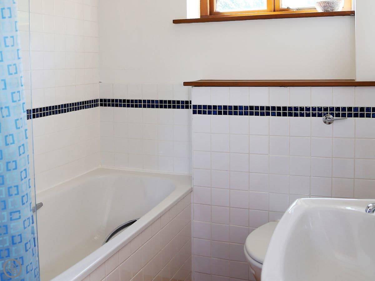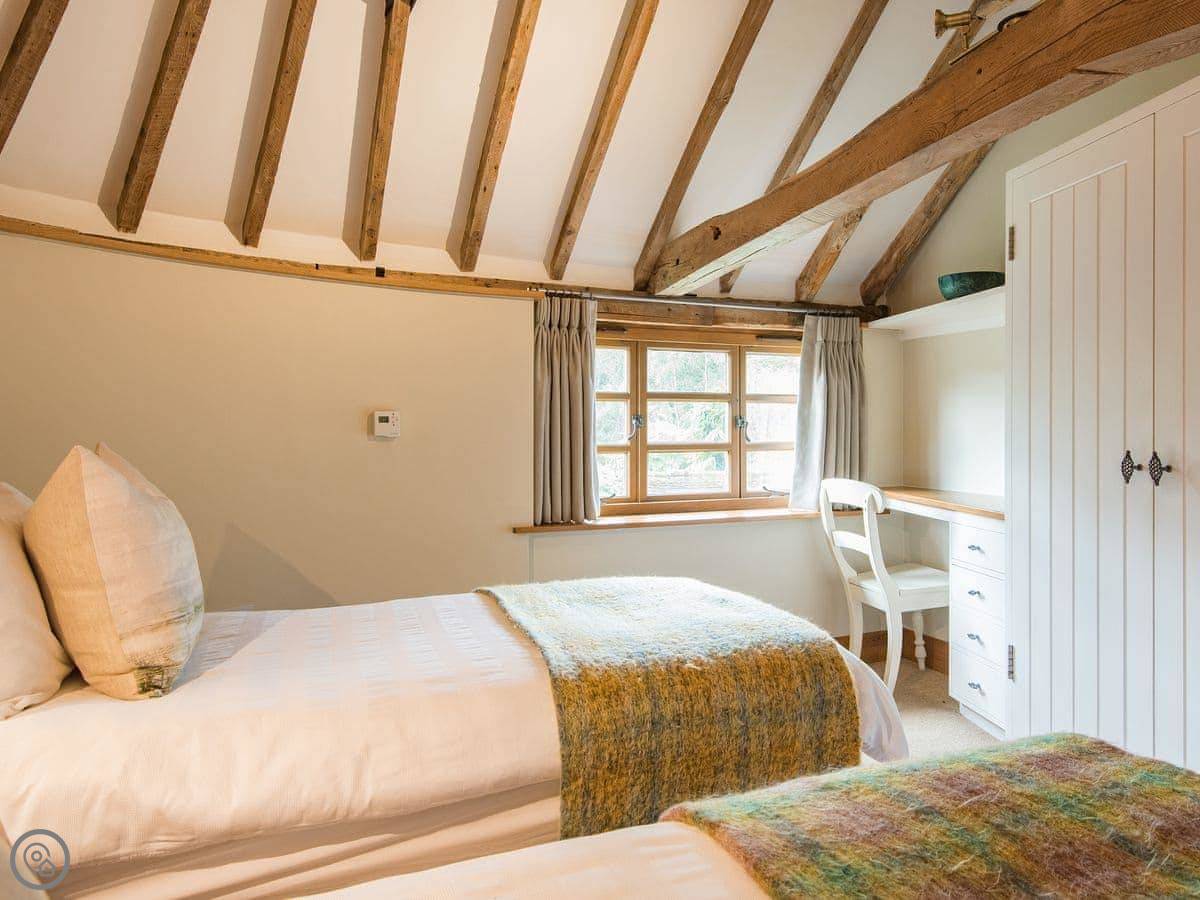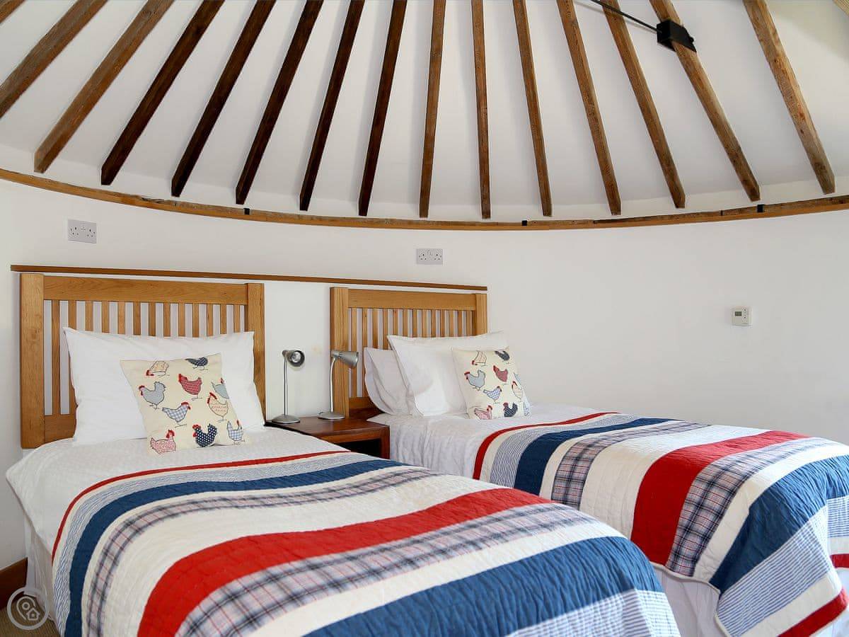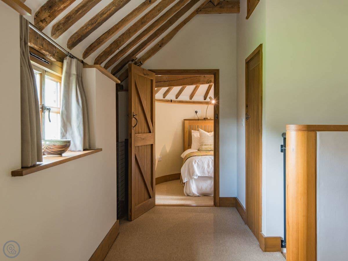 It sleeps four. Two bedrooms, one bathroom. It's a 3 Star place, so it's comfortable and clean but not luxurious. The stairs go up to what they call the galleried living room. It's a big, open space on the first floor, which is a bit unusual.