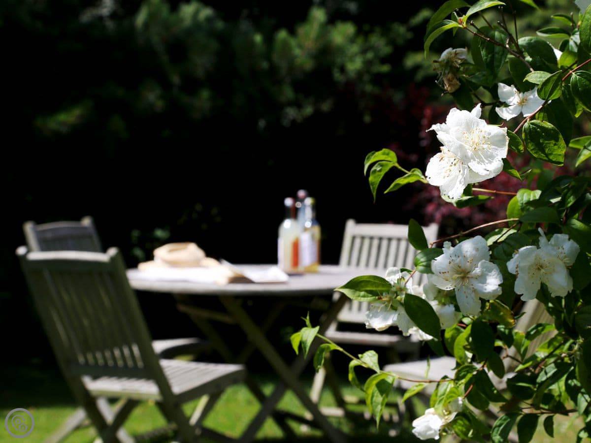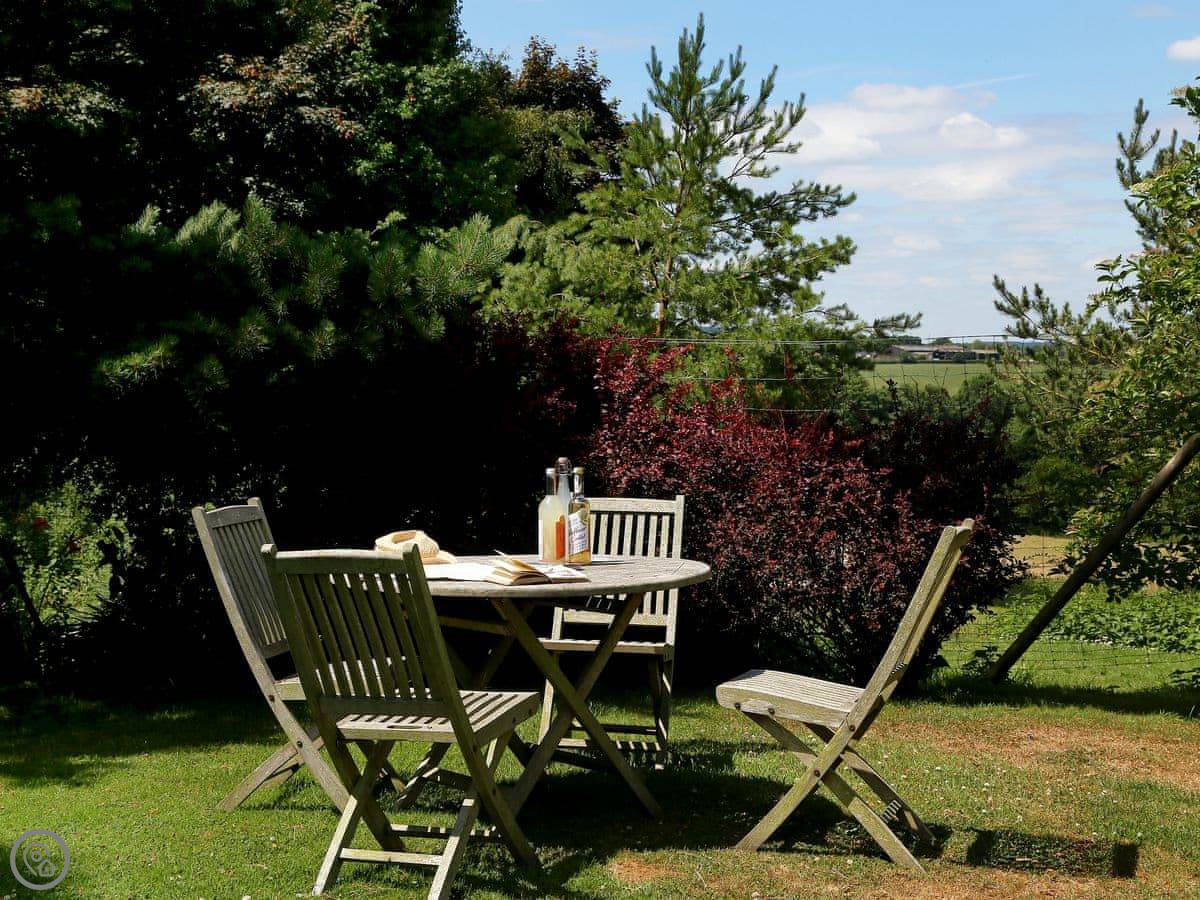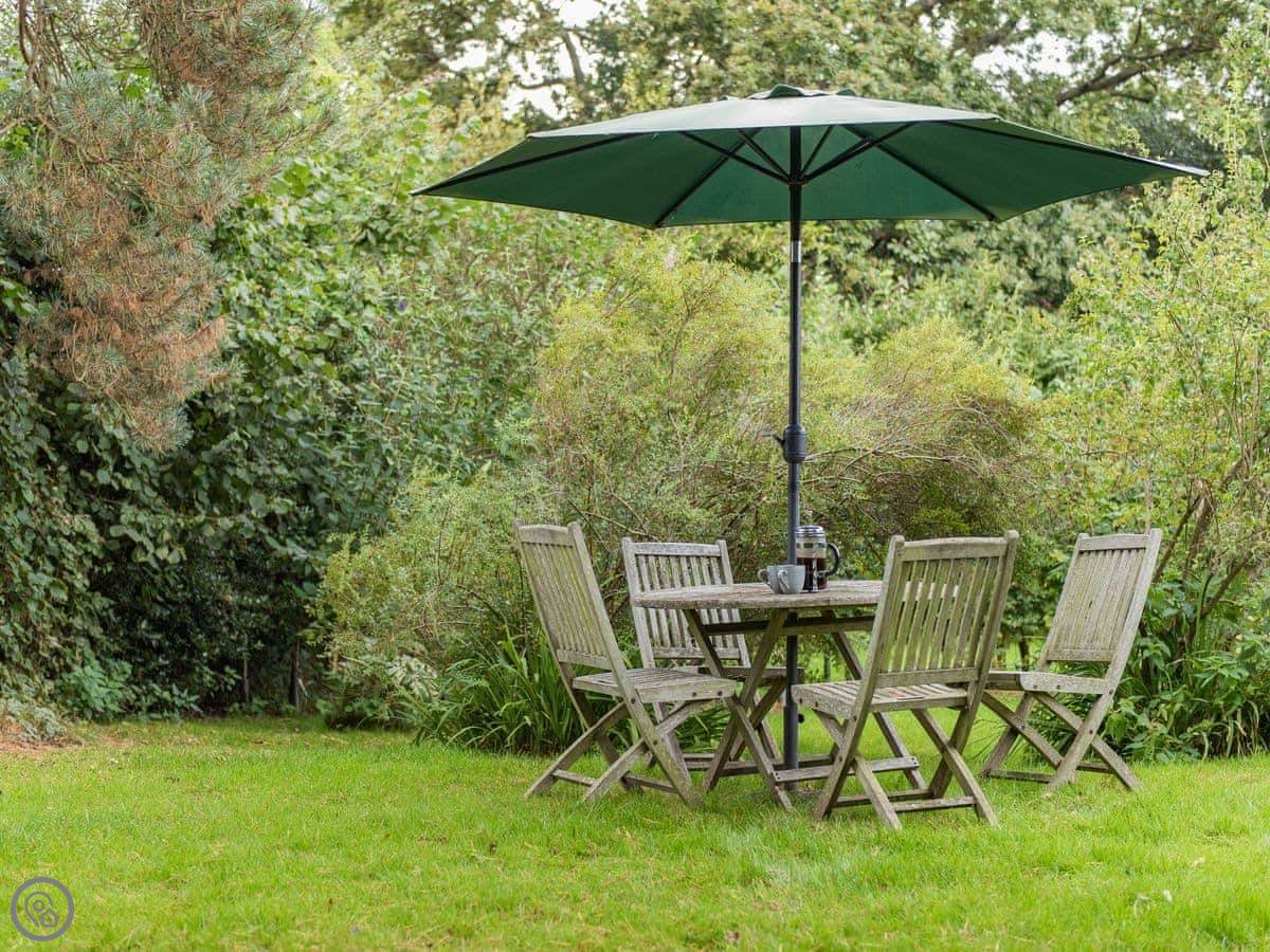 The cottage is part of a working farm, next to our house and garden. You get a small terrace and, past our garden, there's a bit of grass you can use with good views. Parking is round the back for two cars.