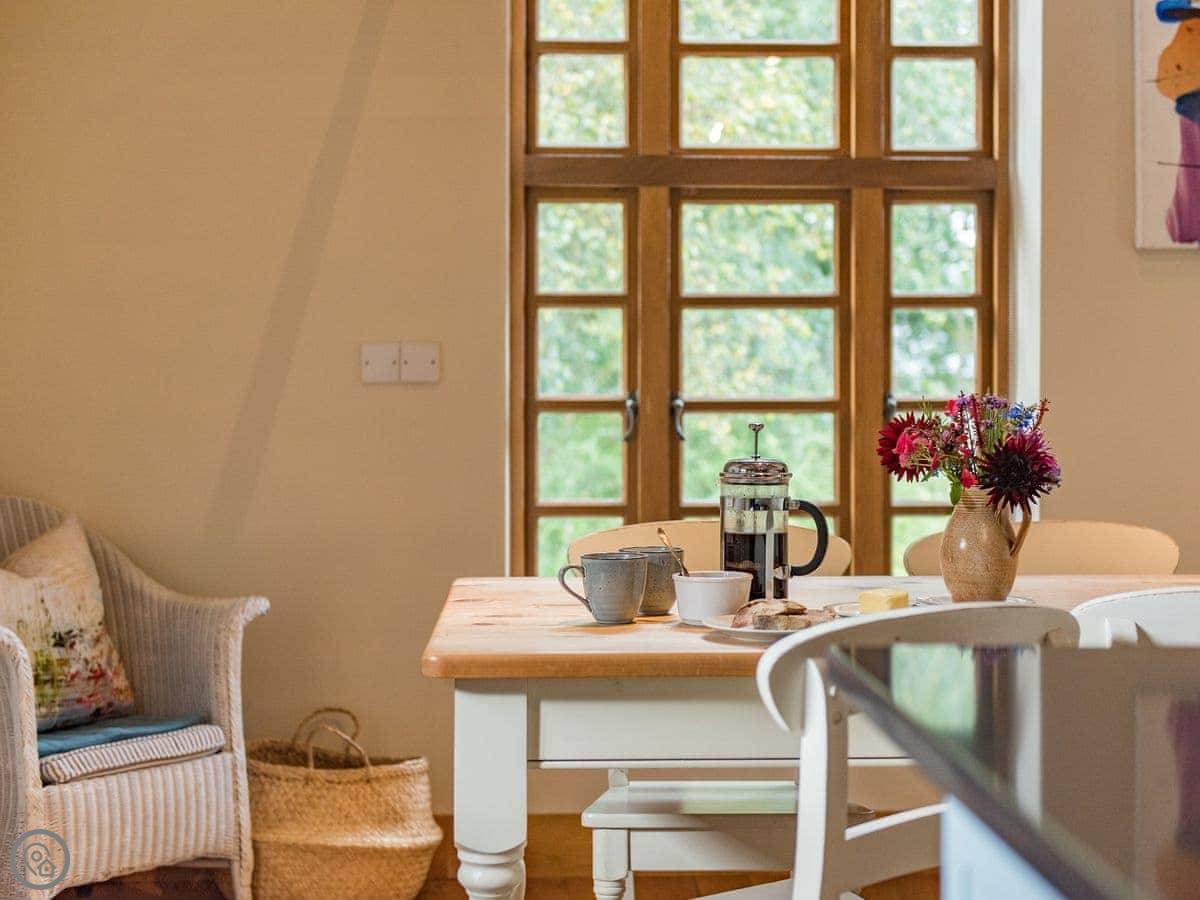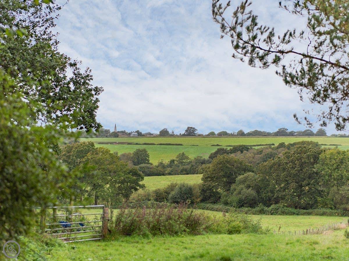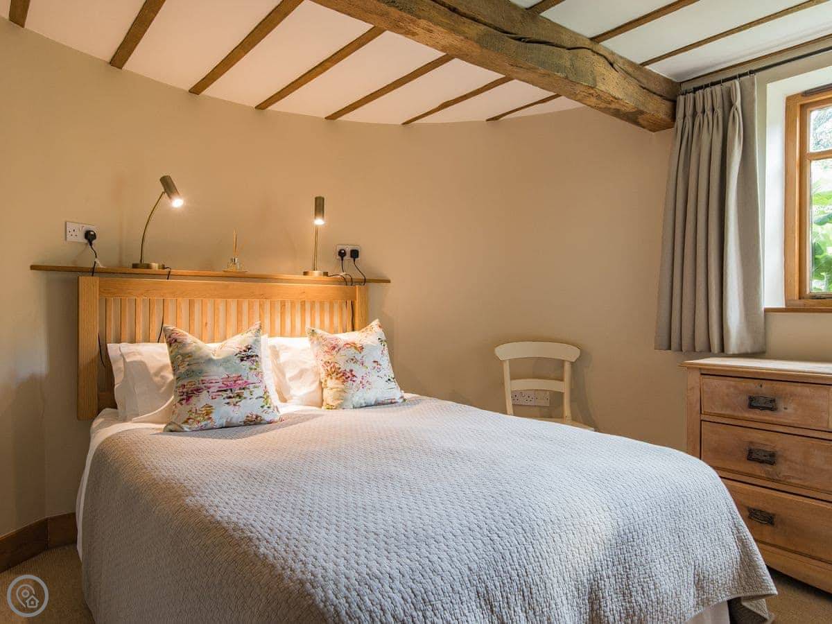 The cottage is part of a working farm, next to our house and garden. You get a small terrace and, past our garden, there's a bit of grass you can use with good views. Parking is round the back for two cars.