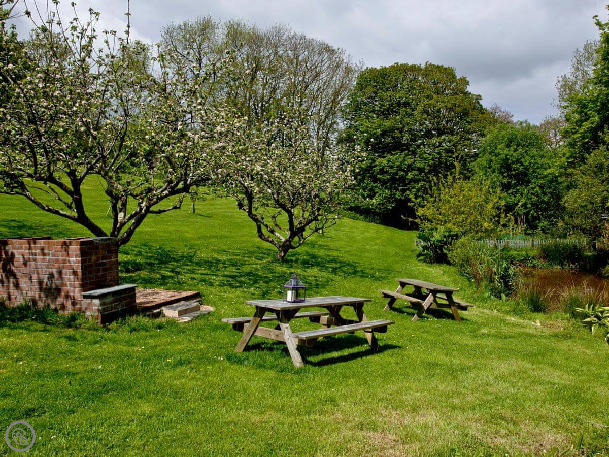 It's on about two and a half acres of its own land. Mostly gardens, some orchard, and there are a couple of duck ponds. You can barbecue out there.