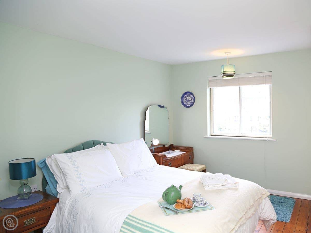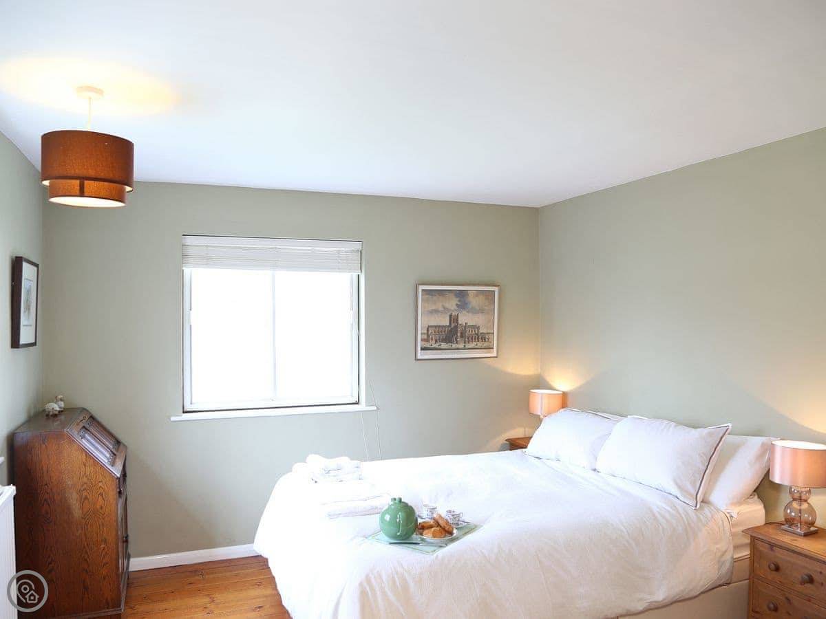 The place sleeps five. Three bedrooms and one bathroom. It's a 3 Star rating, so it's comfortable and clean. The kitchen is well equipped. There's a washing machine and tumble dryer, but no dishwasher.
