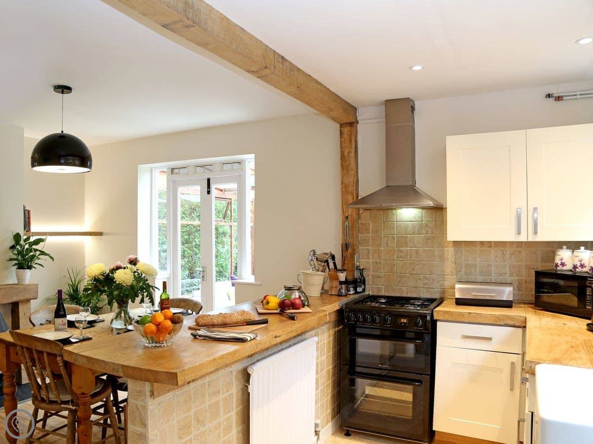 The mornings at Nut Tree Cottage are a time to enjoy: picture sitting outside basking in the sunshine in the front garden; a great way to prepare for a day trip to one of the local sites or a visit to the nearby historic town of Tunbridge Wells. The house is dressed with a mix of modern furnishing, complementing the cream and oatmeal hues that work with the original period backdrop of this early 18th Century home. The kitchen and breakfast room with its soft country chic feel is open plan in style and perfect for entertaining the whole family